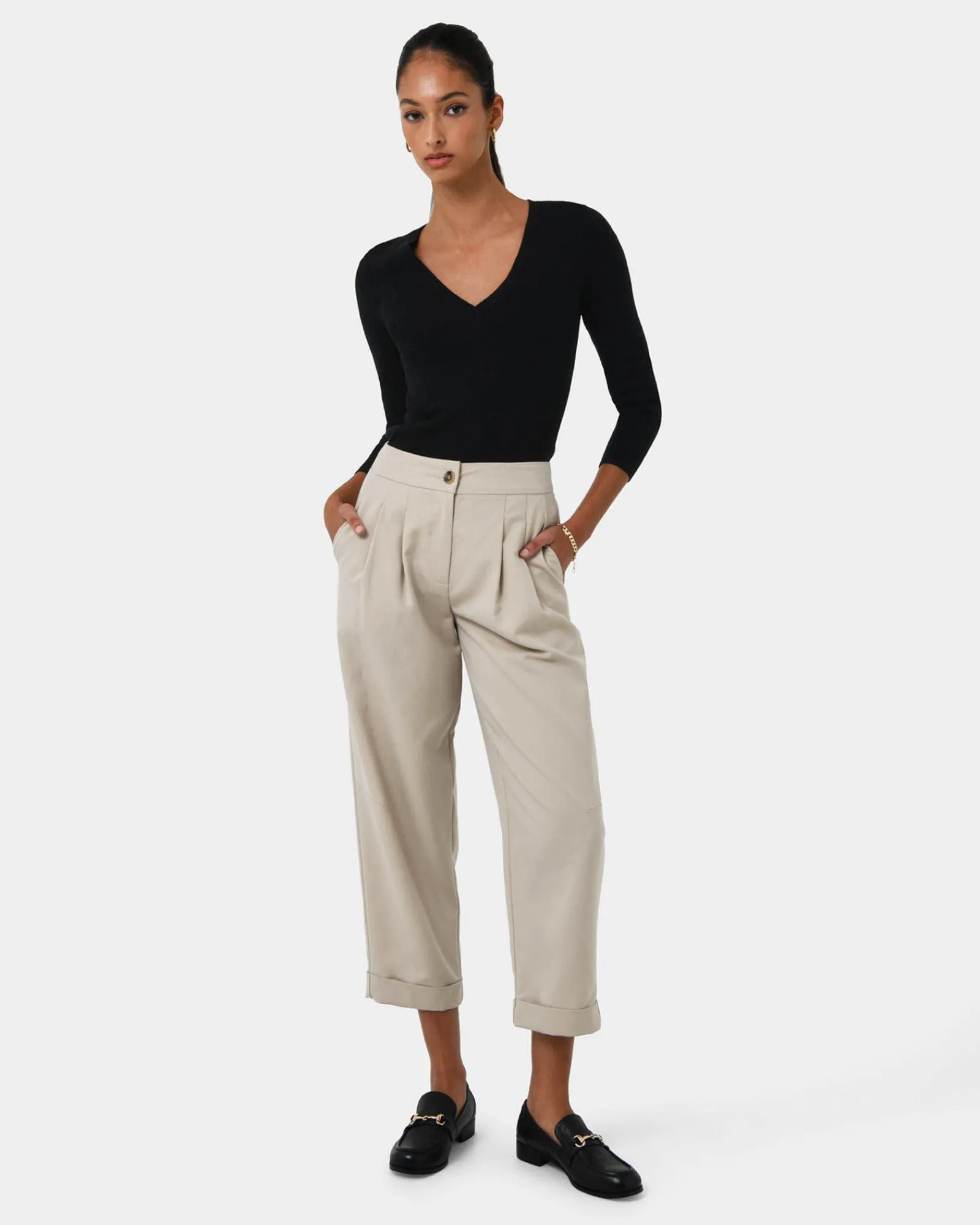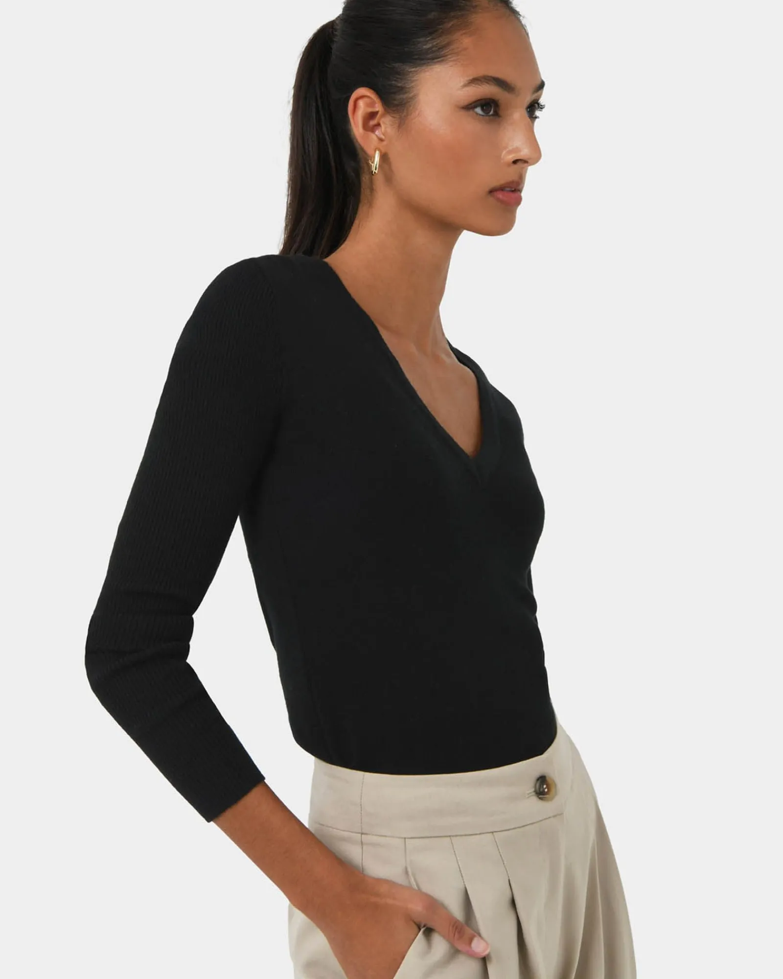 The Vicky V-Neck Knit is a sleek and sophisticated wardrobe essential. Featuring a statement V-neckline and long sleeves, it has ribbed detailing on the sleeves for added texture. It is medium weight with stretch fabrication offering a body hugging fit for all day comfort.