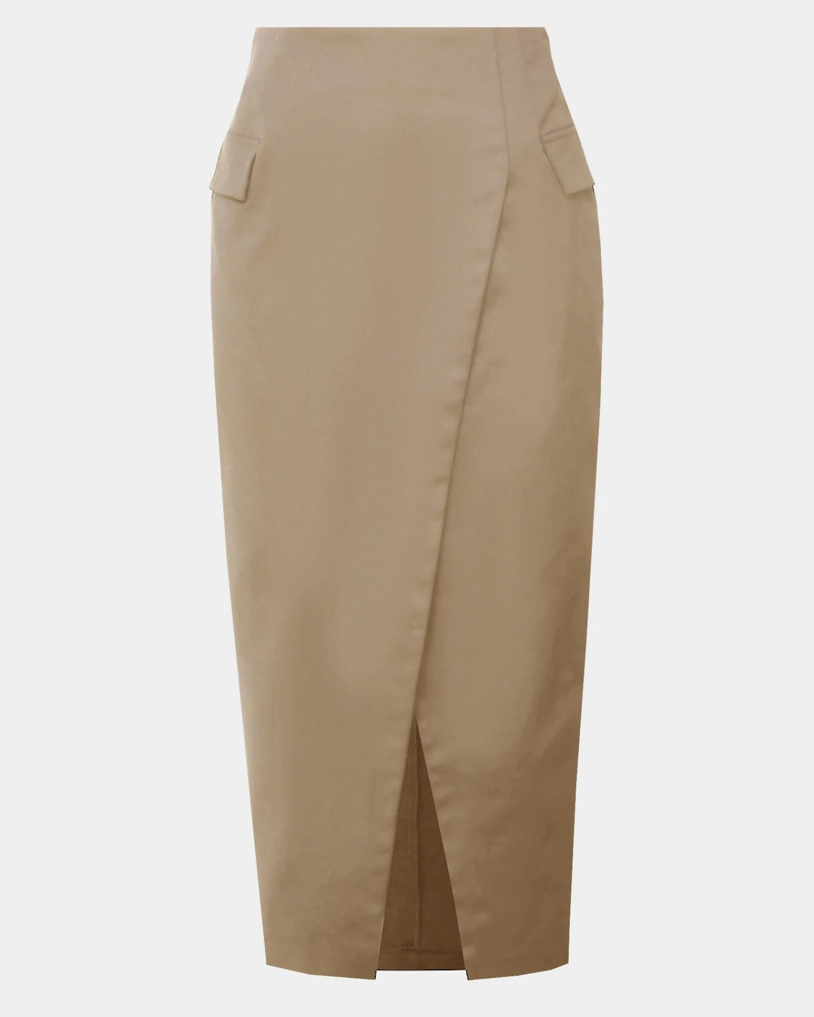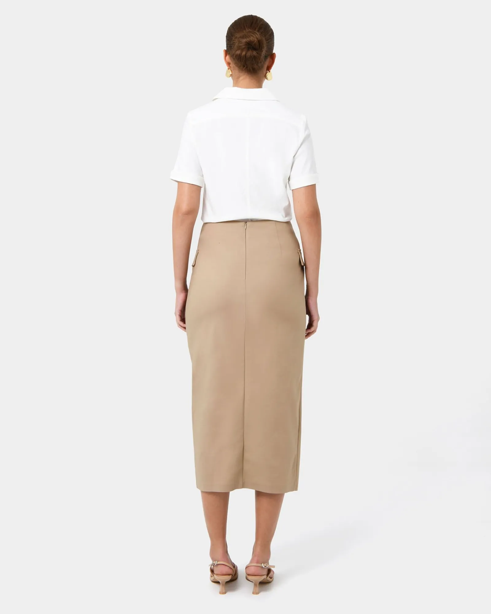 The Abby Asymmetric Tailored Skirt is designed for a structured yet comfortable fit. Made from a cotton blend fabric, it features a unique asymmetric hemline, tailored fit, and a concealed back zip for a clean look. Style it with a blouse and heels for a polished outfit.