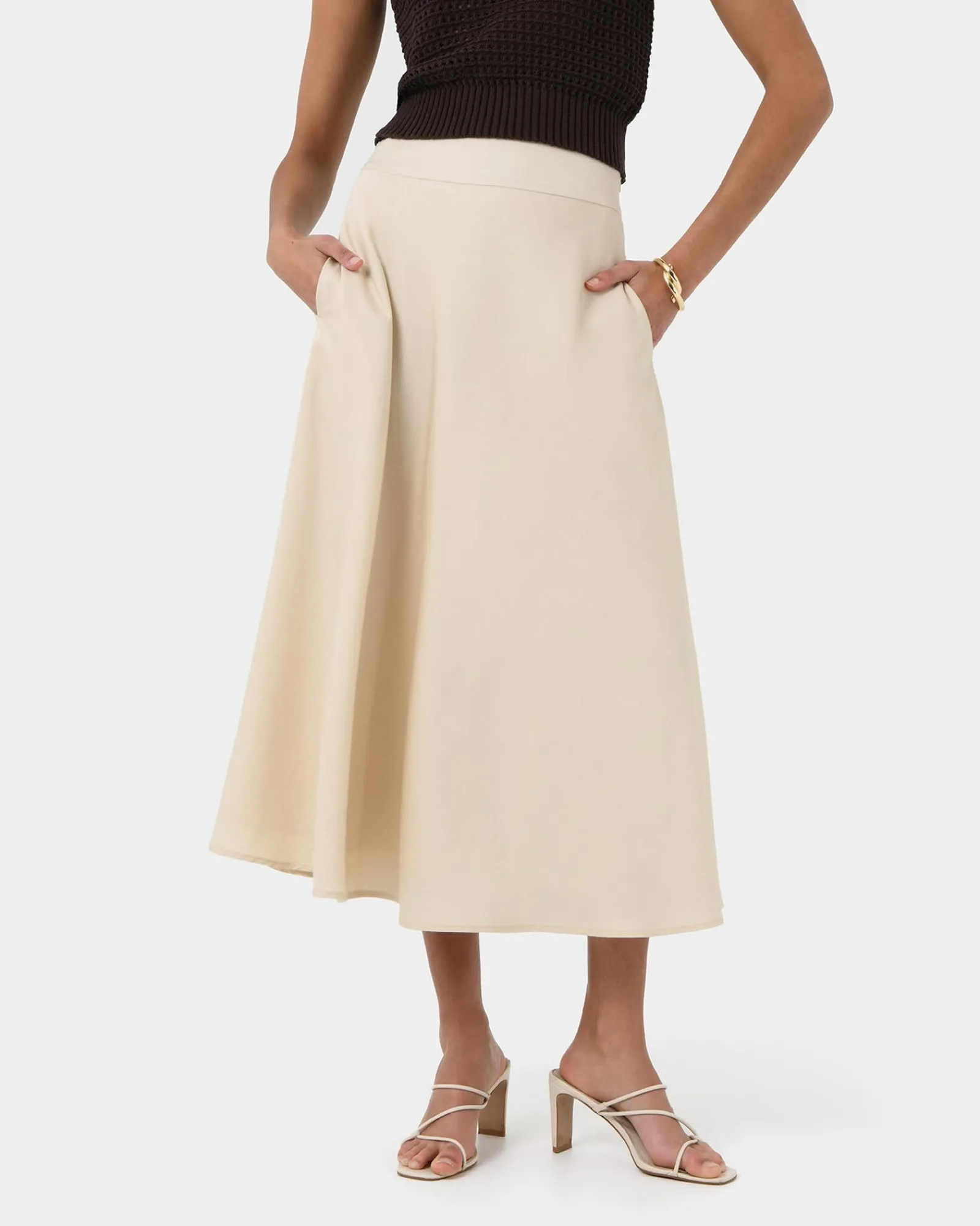 - Bias-cut midi skirt design