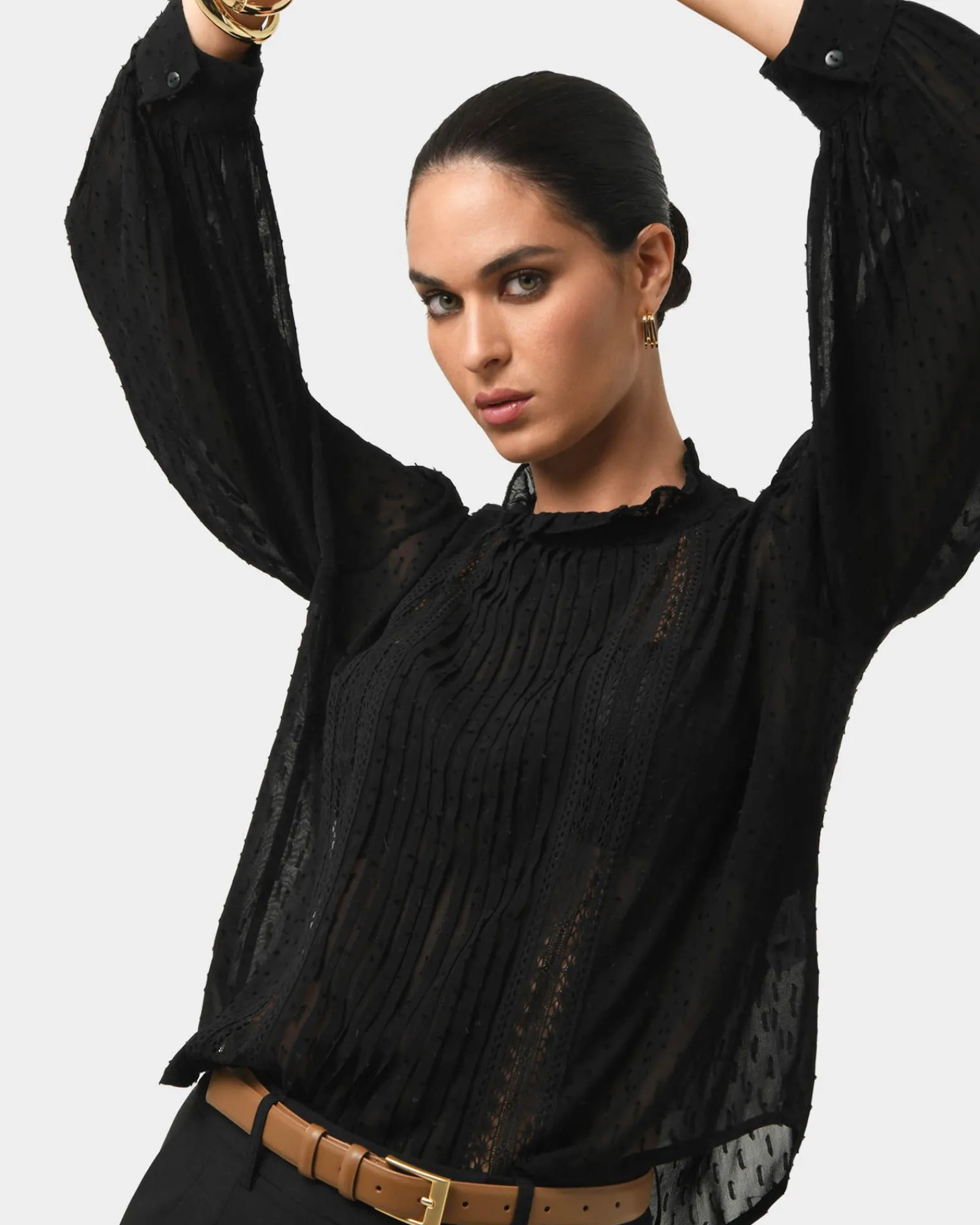 Add a touch of elegance with the Aliana Lace Blouse, a stunning piece that effortlessly combines femininity and sophistication. Whether dressing up for a special event or adding a chic touch to your everyday look, the blouse can be easily paired with tailored pants for the office or a trendy skirt for an evening out.