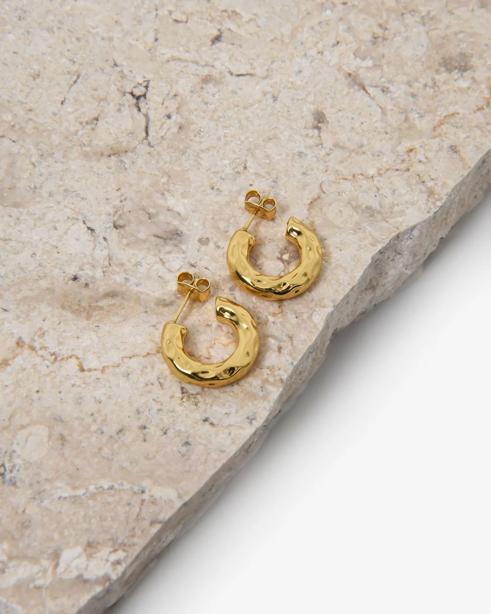 A refined take on everyday glam. Amaris Gold Hoop Earrings combine a classic silhouette with an artful hammered finish that reflects the light with every move. Lightweight and luminous, they’re perfect for elevating your look.