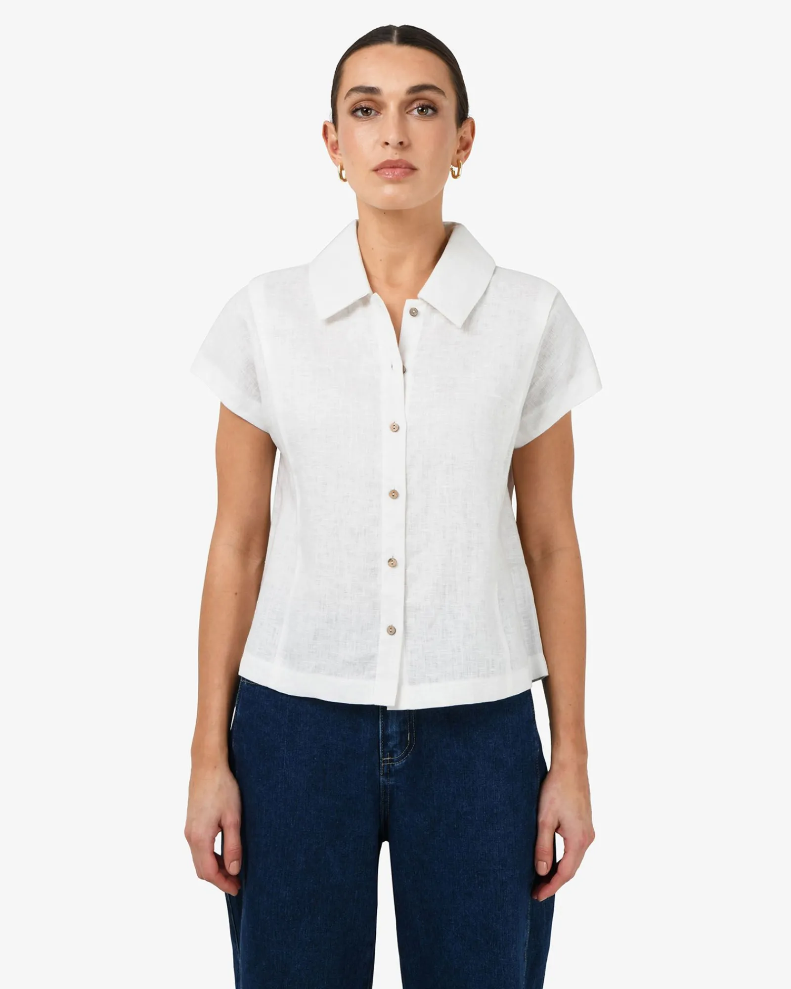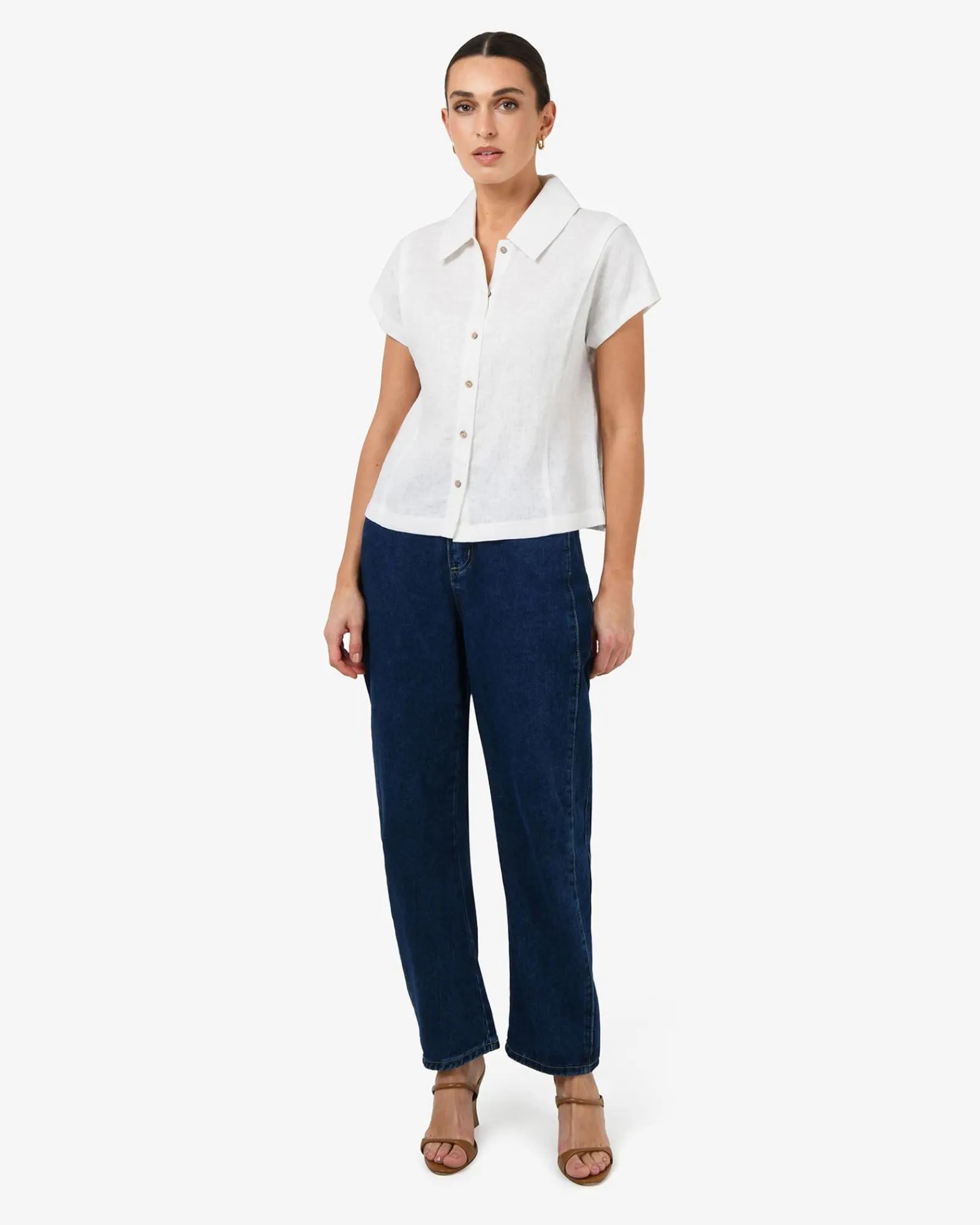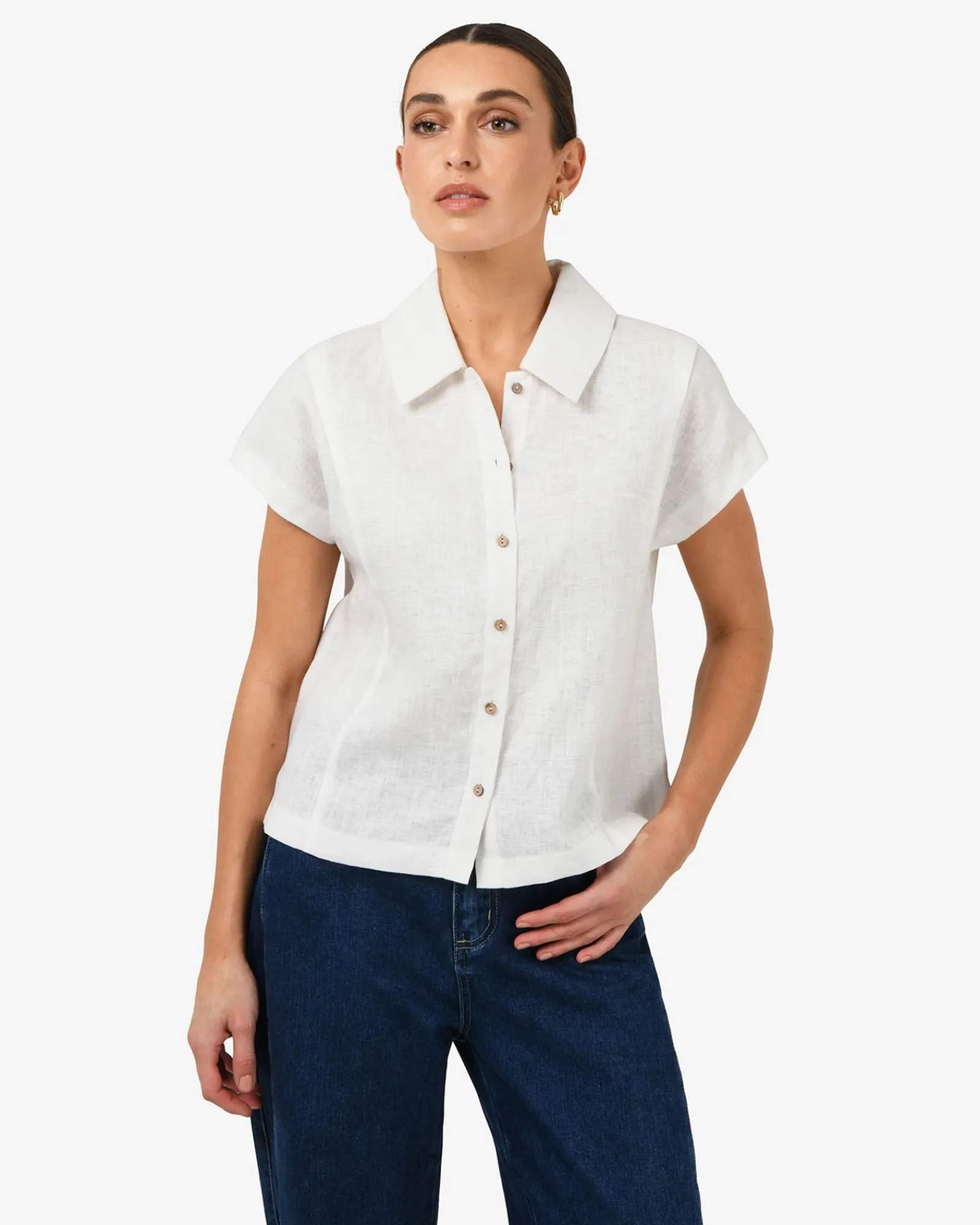 The Ami Linen Collar Shirt is made from 100% Linen and features a classic collar, shoulder pleat details and a button-down front. With its relaxed fit and slightly cropped in length, it pairs perfectly with the matching Ami Wide Leg Linen Pants, or can be styled with shorts or lightweight pants for a fresh, high-summer look.