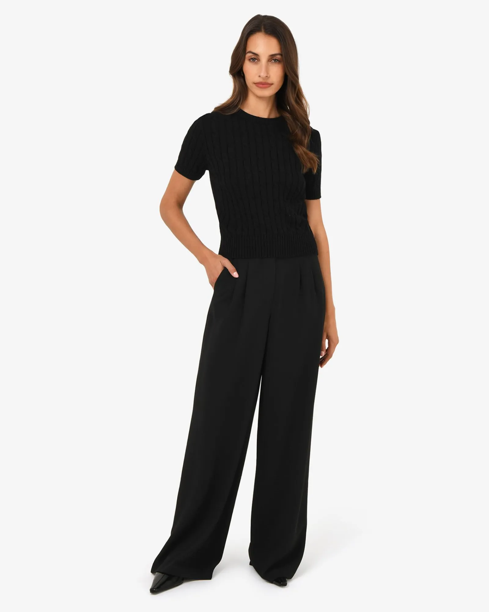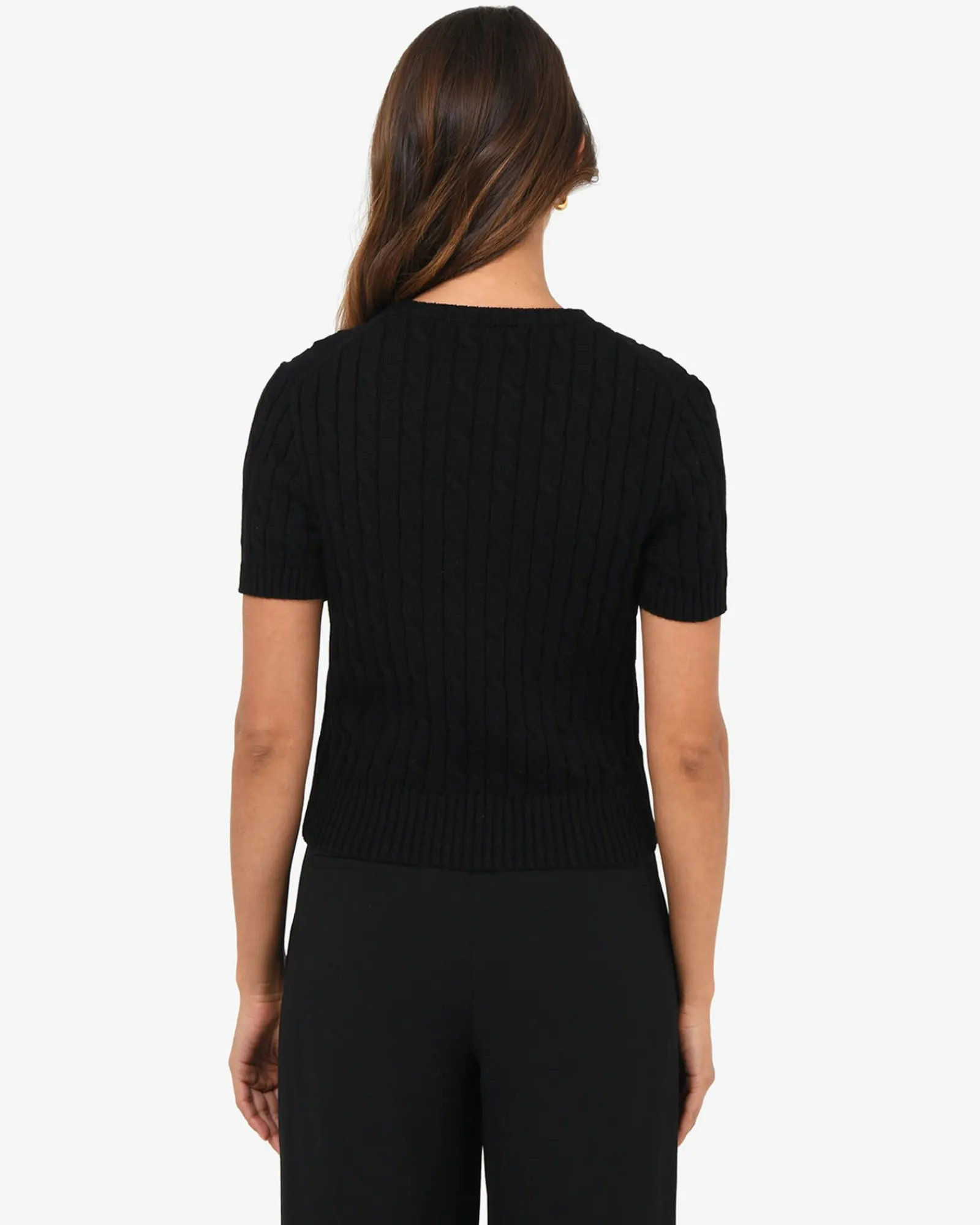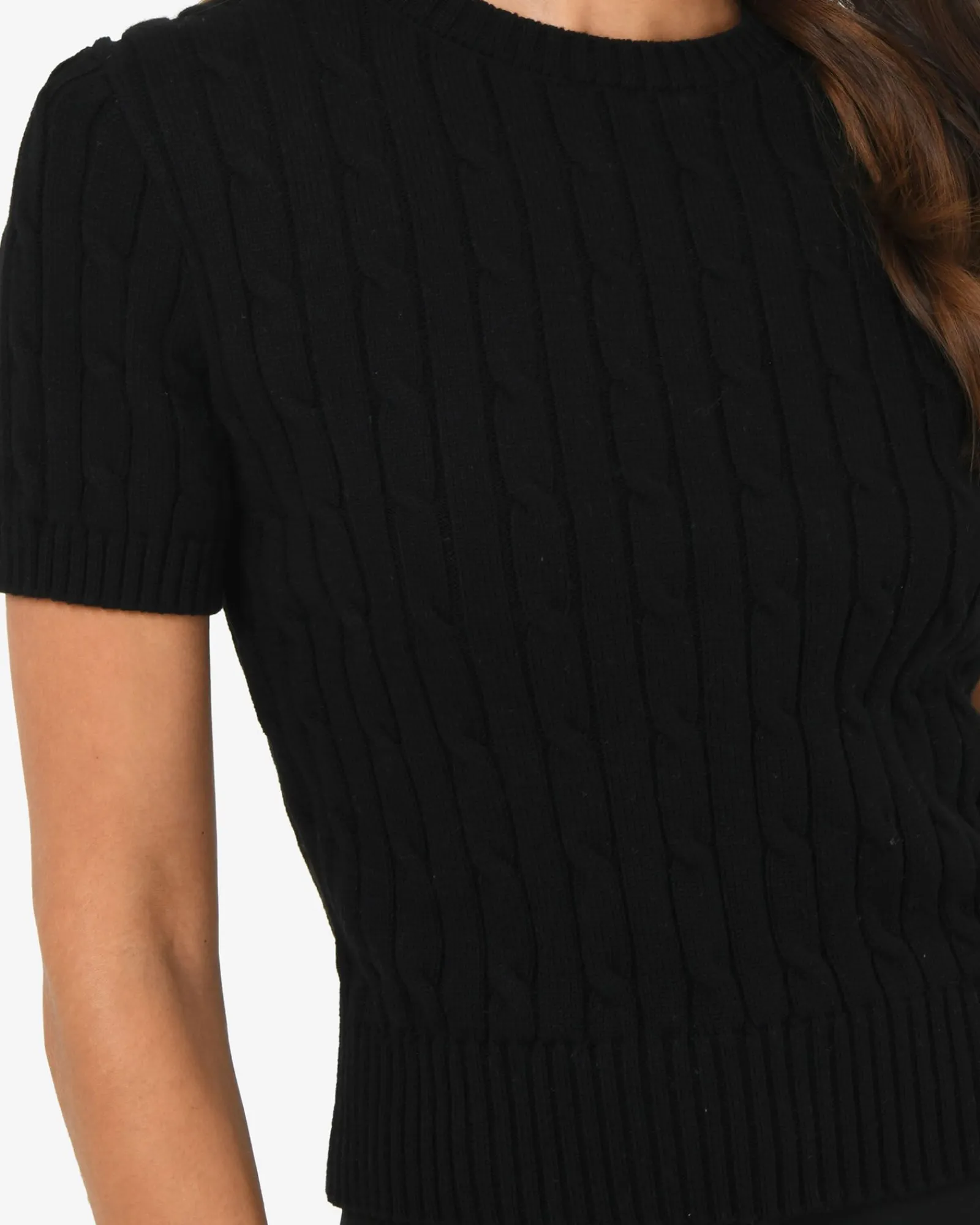 Discover effortless style with our Anita Short Sleeve Cable Knit. Featuring a classic cable pattern in a lightweight knit, this top combine simplicity with a touch of sophistication. Perfect for layering or wearing solo, its versatile design and soft fabric make it a must-have for any wardrobe.