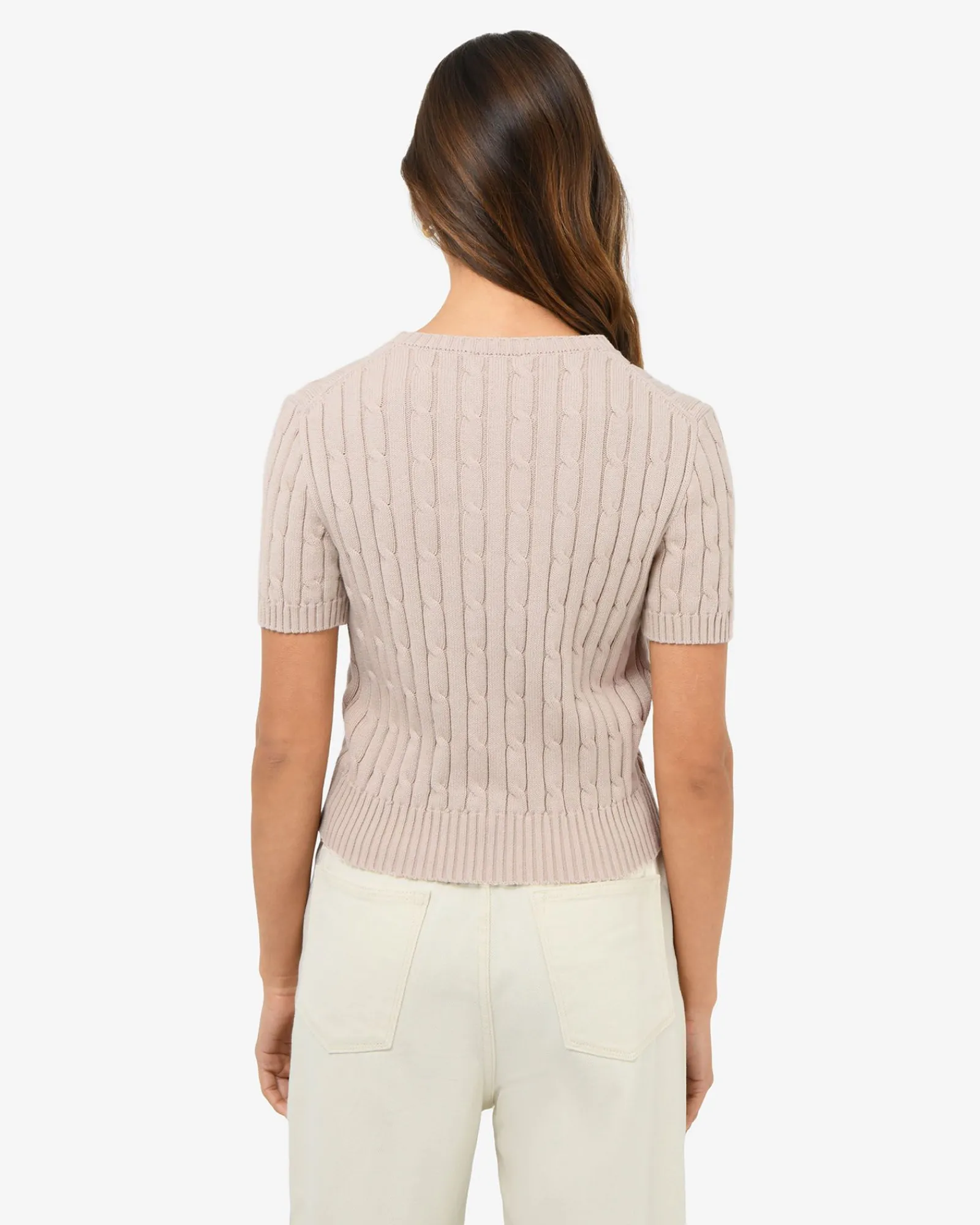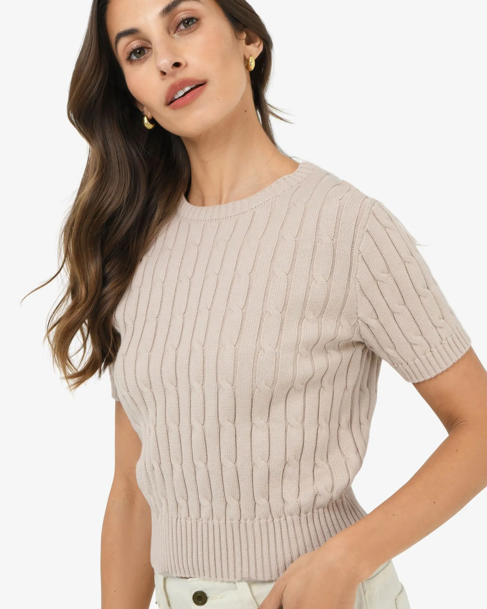 Discover effortless style with our Anita Short Sleeve Cable Knit. Featuring a classic cable pattern in a lightweight knit, this top combine simplicity with a touch of sophistication. Perfect for layering or wearing solo, its versatile design and soft fabric make it a must-have for any wardrobe.