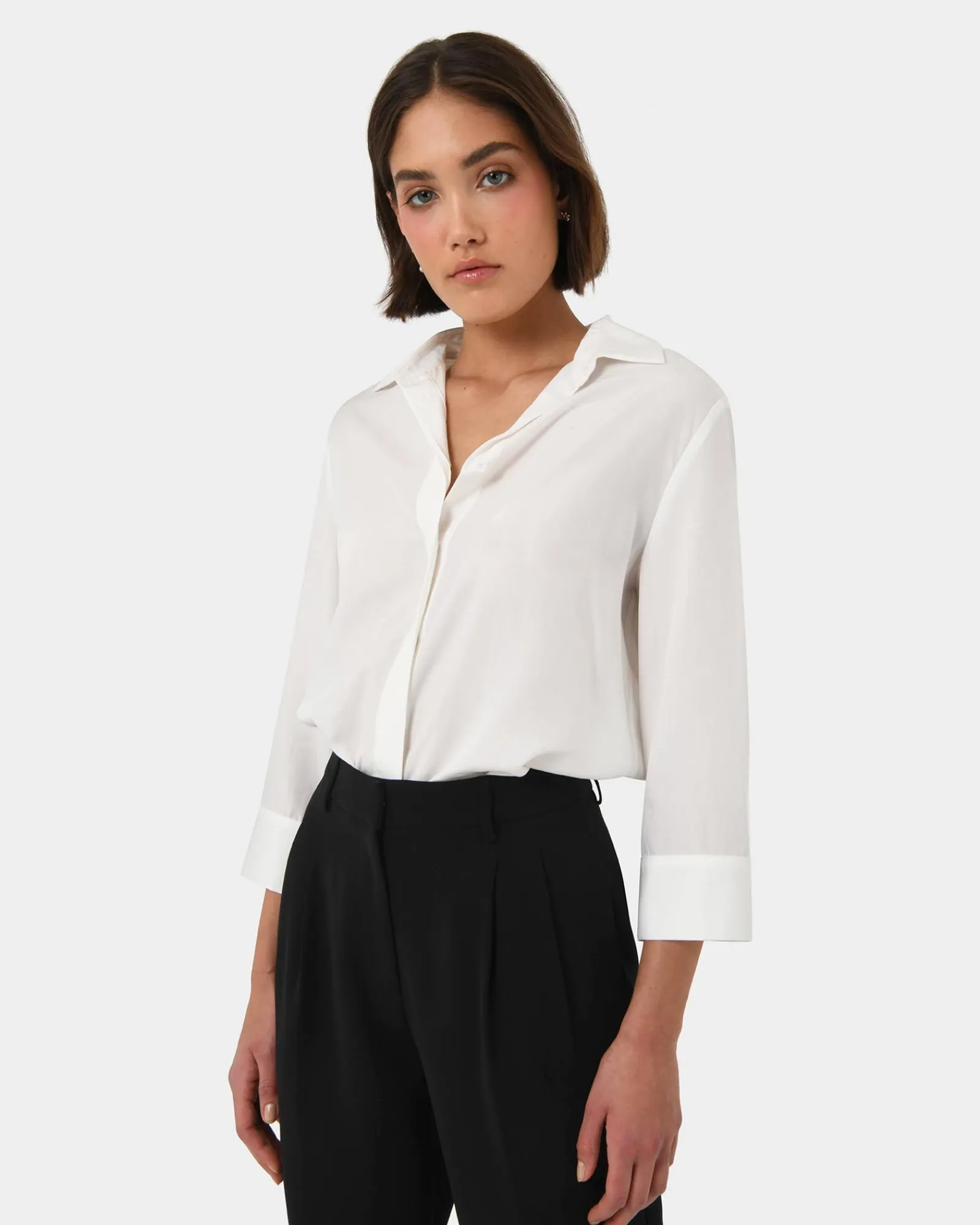 The Bella 3/4 Sleeve Shirt strikes the perfect balance between classic tailoring and everyday comfort. With its relaxed fit, this versatile shirt transitions effortlessly from day to night. The 3/4 length sleeves offer a refreshed shirting look for the new season. Style this with tailored trousers or skirts for a polished look.