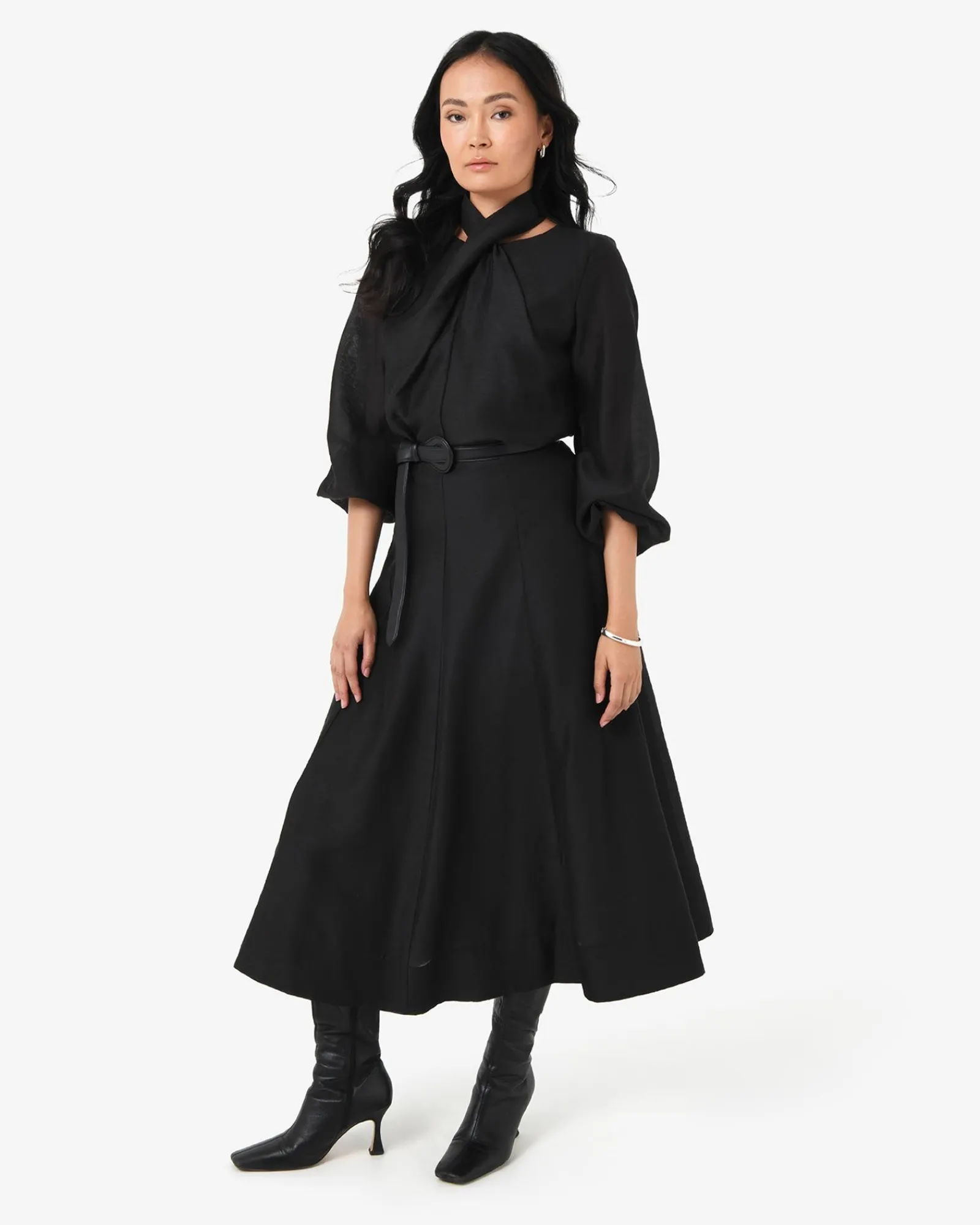 Introducing the Bellini Panel Maxi Skirt. With its flattering high waistband and flowing panel design, this skirt hugs your curves before gracefully flaring out to a full-length hem. Pair with the Bellini Blouse for a graceful ensemble.