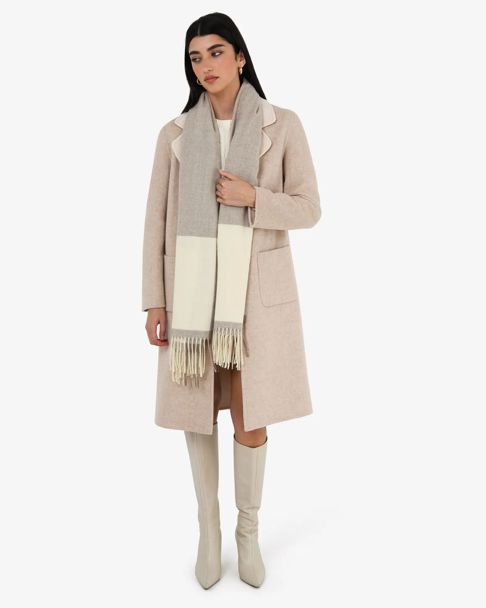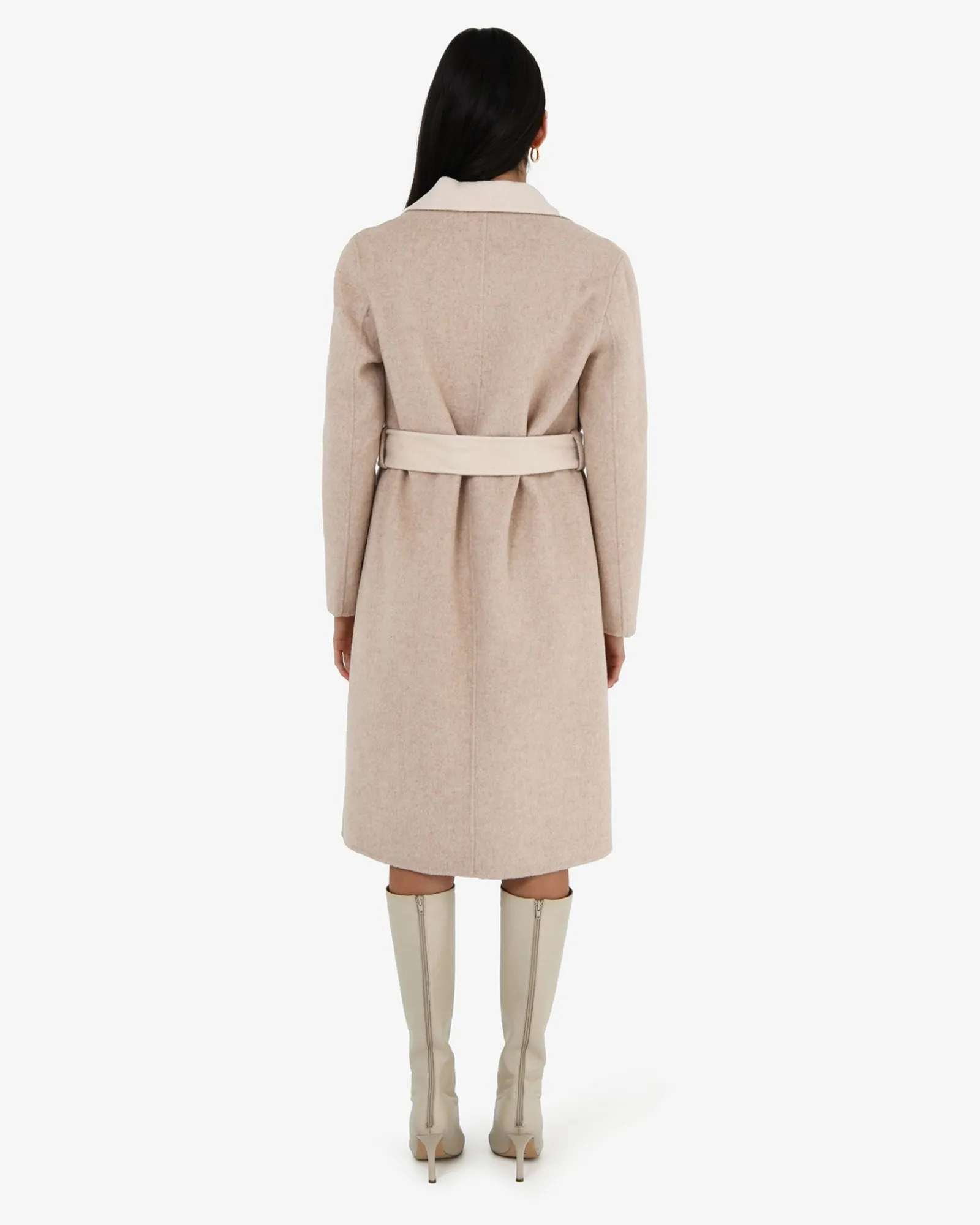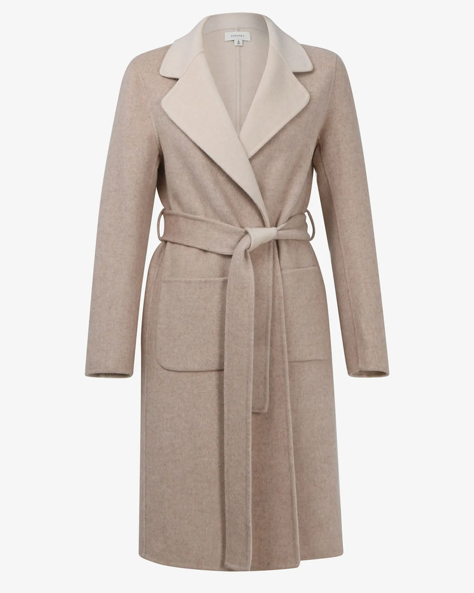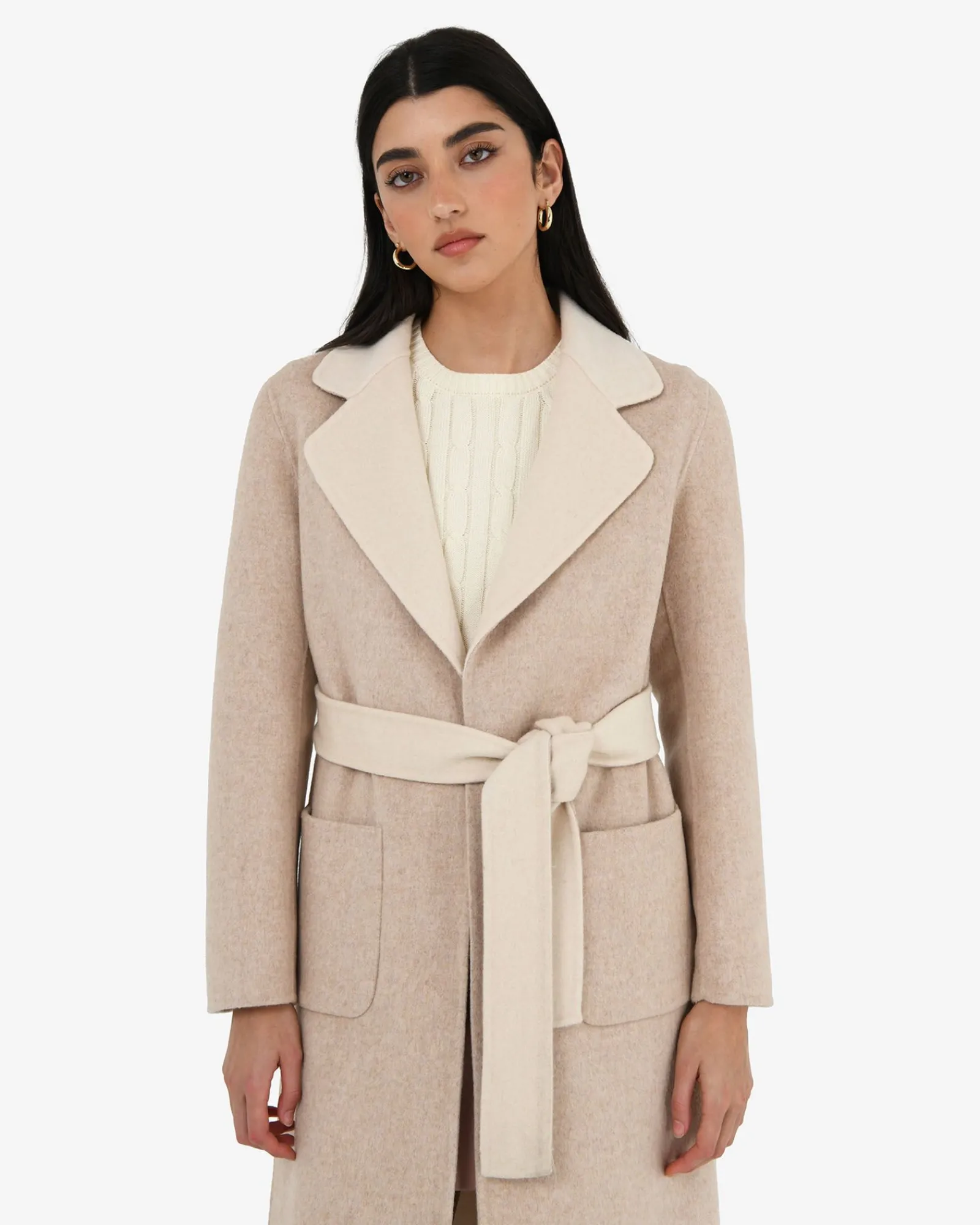 Make winter layering look effortlessly chic with the Camille Wool Tie Coat. Featuring a wrap silhouette designed to flatter your figure, the self-tie belt cinches the waist for a customisable fit, while the contrast-coloured lapel adds a modern, eye-catching detail. An ideal addition to your seasonal staples.