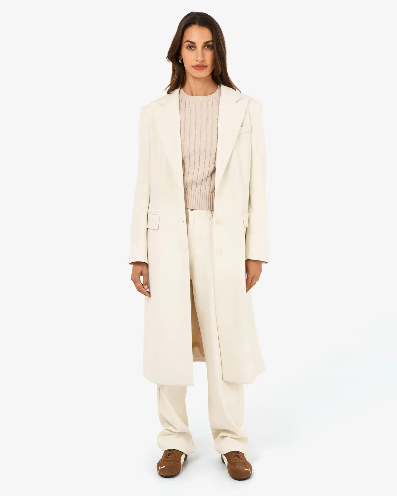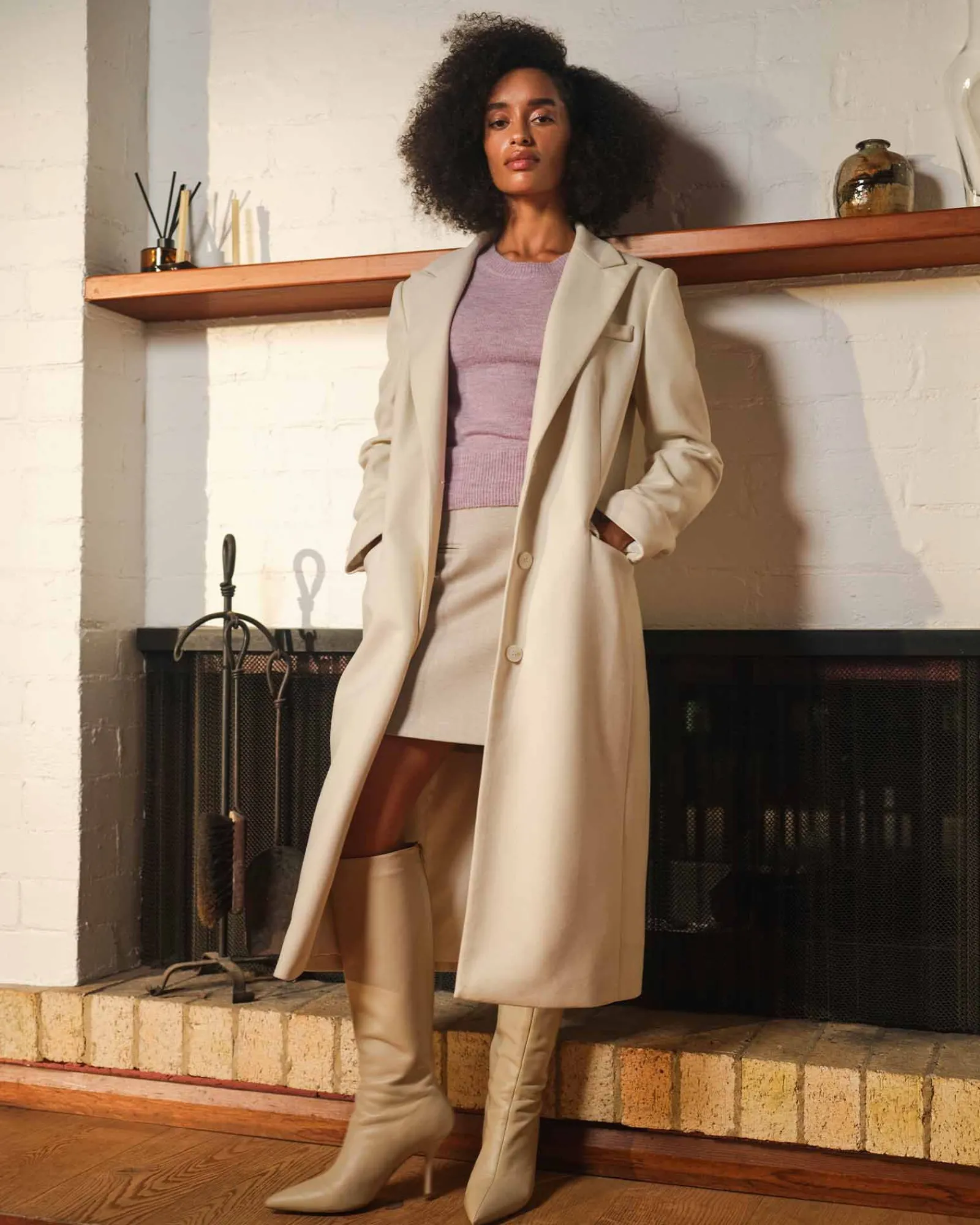 With its tailored shape and sharp shoulders, the Cassandra Tailored Coat is designed to create a sleek silhouette. Featuring functional front flap pockets and a back vent, it seamlessly combines style and comfort. Designed with medium to heavy weight fabric and midi length, it will provide comfortable layering during cooler weather.