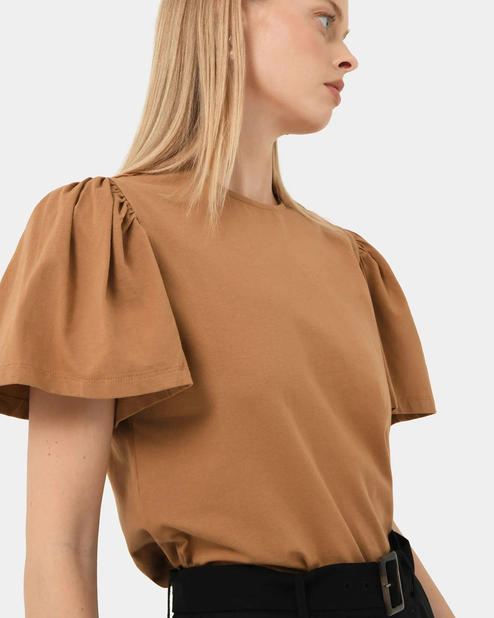 For a clean and comfortable addition to your corporate closet, choose the Cayla Gathered Sleeve Tee. This feminine and contemporary take on the classic tee is the perfect choice for an outfit that will take you through your busy schedule. Style it with slim pants and classic heels for a comfortable yet polished professional look.