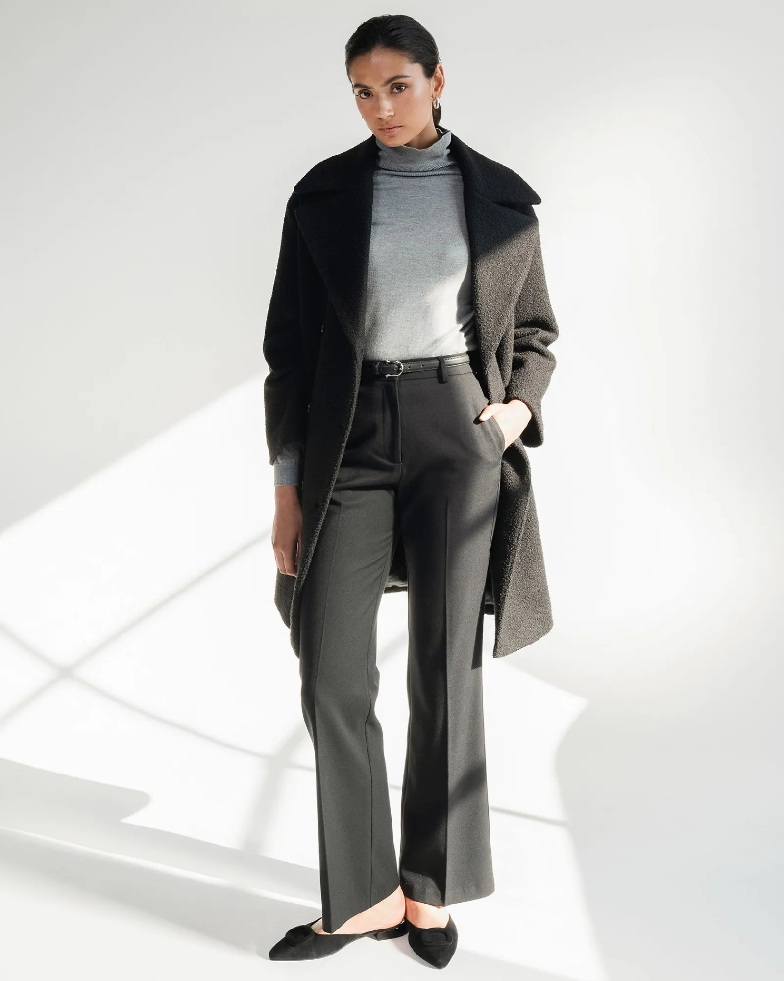 - Fixed waistband with belt loops