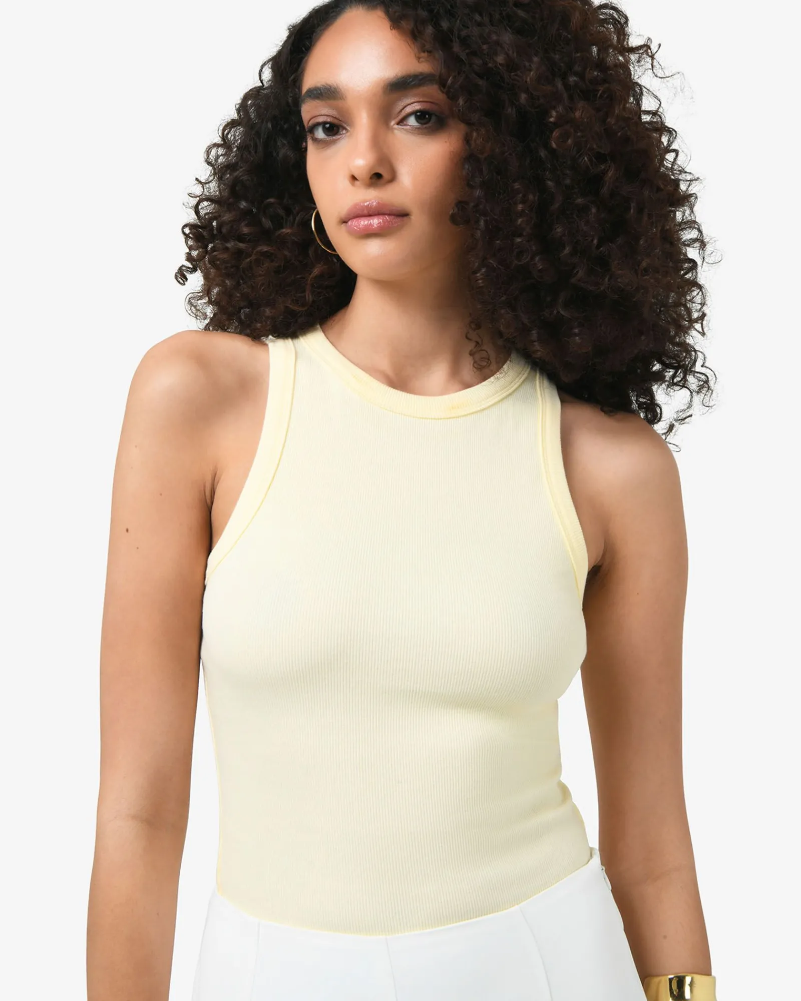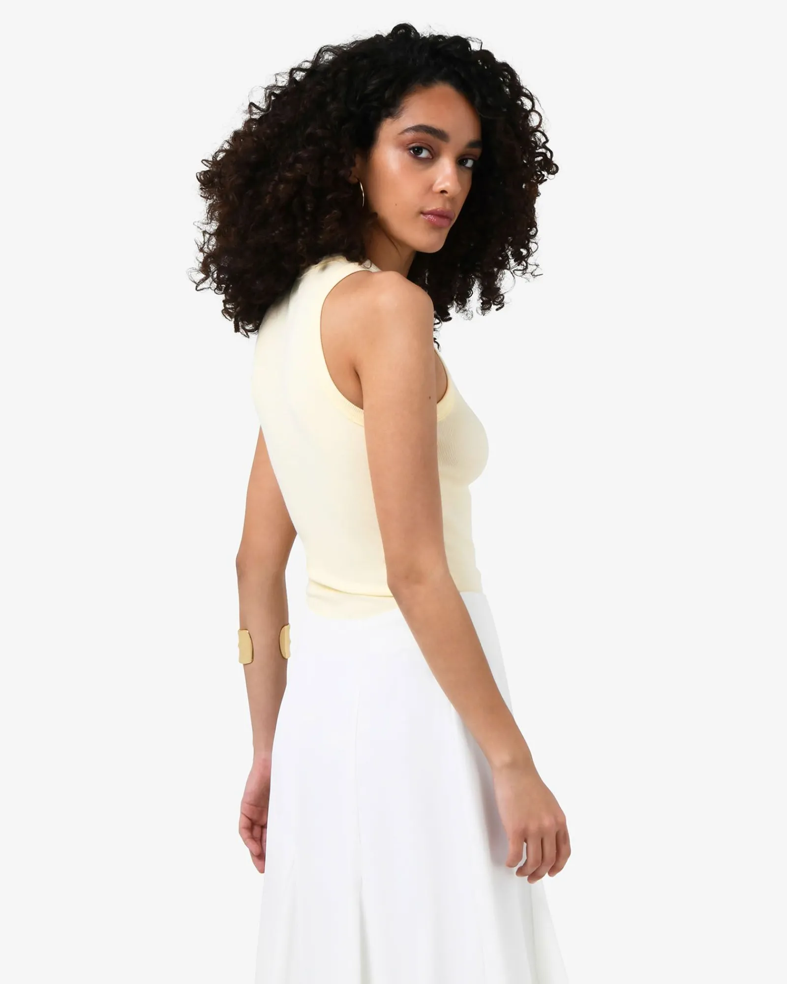 The Devon Cotton Blend Singlet is a versatile wardrobe essential that is made from a stretch, ribbed, cotton blend fabrication. Featuring a round neckline with a body skimming fit, it easily pairs with your favourite denim for a neat out-of-office look, or style with tailored pants and skirts for an elevated outfit.