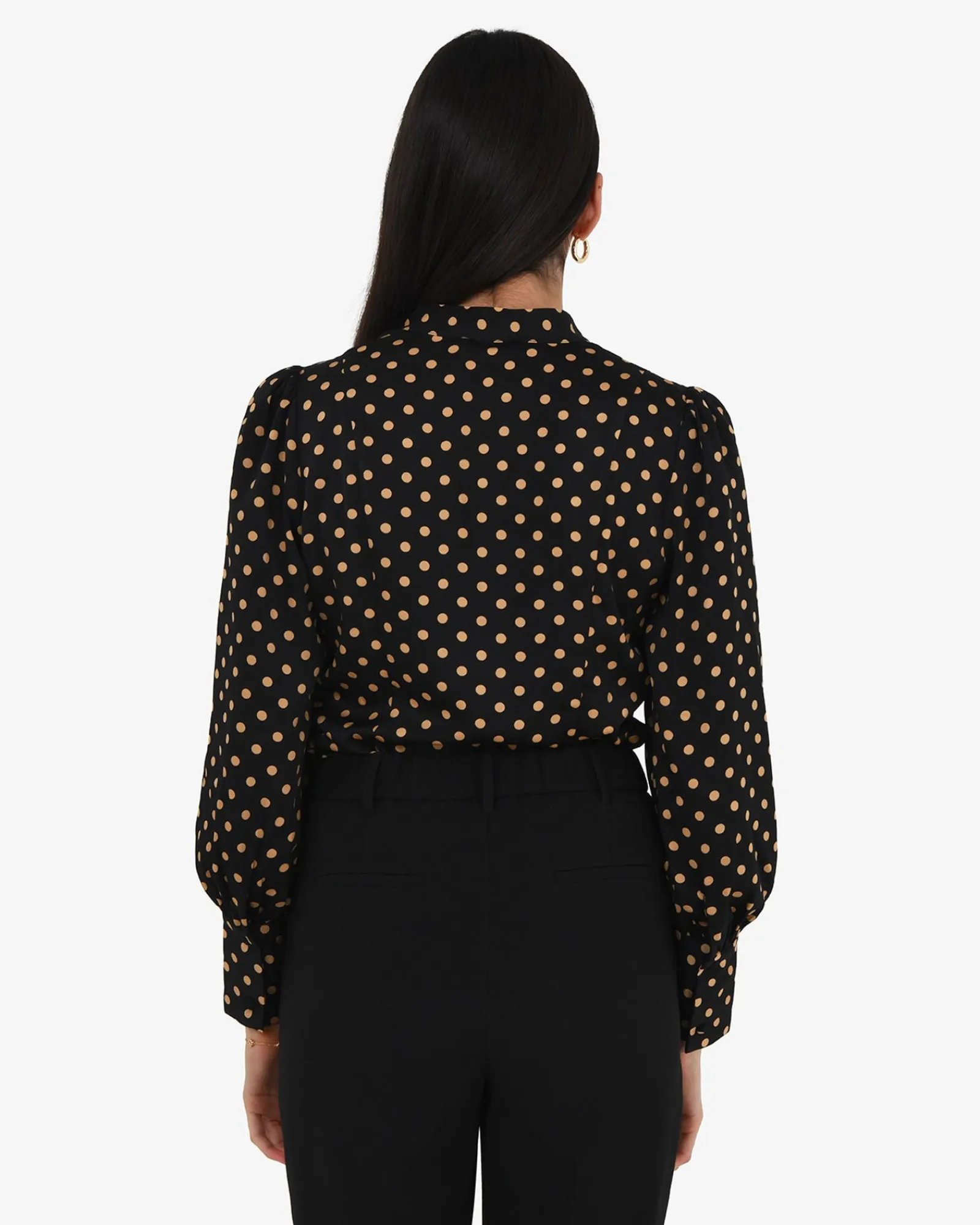 Add instant charm to your everyday look with the Dotti Polka Dot Printed Blouse. Designed with a loose fit and soft, flowing fabric, it balances polish and ease. The mandarin collar and long balloon sleeves add a refined touch to its fun, feminine features.