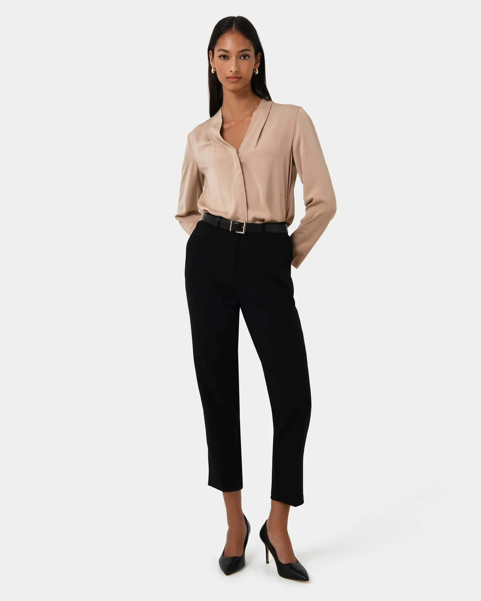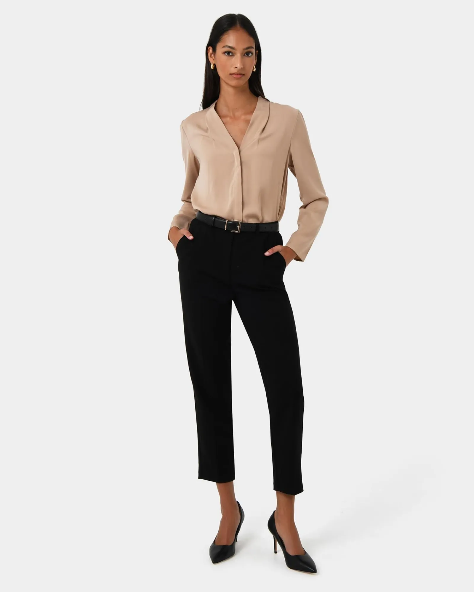 A timeless essential, the Elka Straight Leg Pants offer a sleek and polished look for various occasions. Featuring a straight leg silhouette with functional side pockets and double back faux welt pockets, these pants are both stylish and versatile. Pair with a tailored blazer and loafers for a professional look, or keep it casual with a knit top and flats for everyday wear.