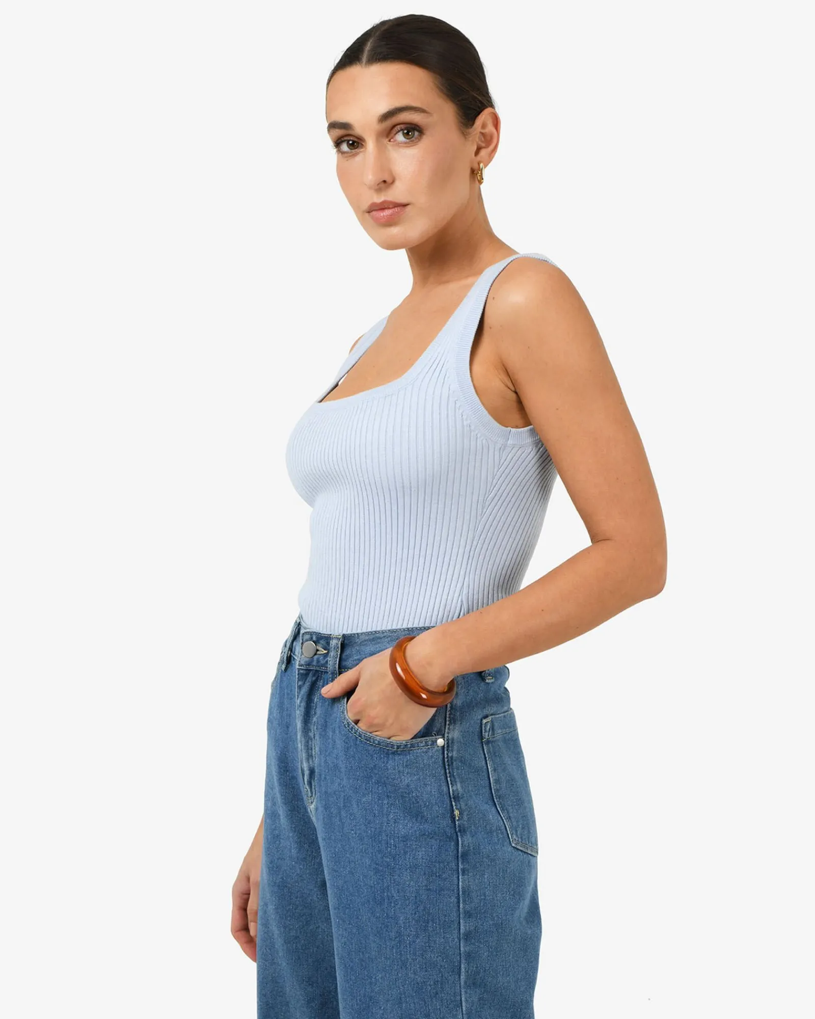 Ella Square Neck Rib Knit top is a wardrobe essential that combines style and comfort. Made from soft, ribbed knit fabric, this top offers a flattering, form-fitting silhouette, while the chic square neckline adds a modern, sophisticated touch. Perfect for layering or wearing on its own – can also be styled with denim, mini skirts and shorts.