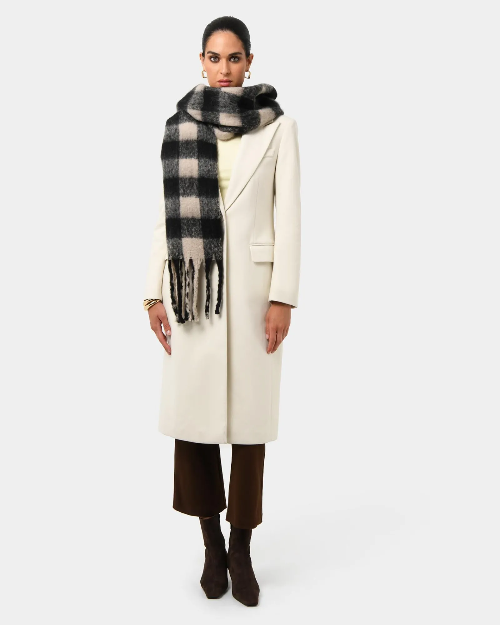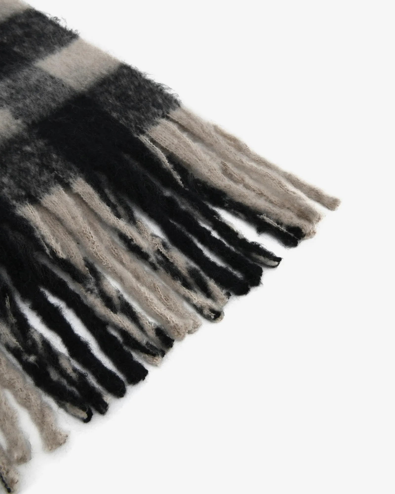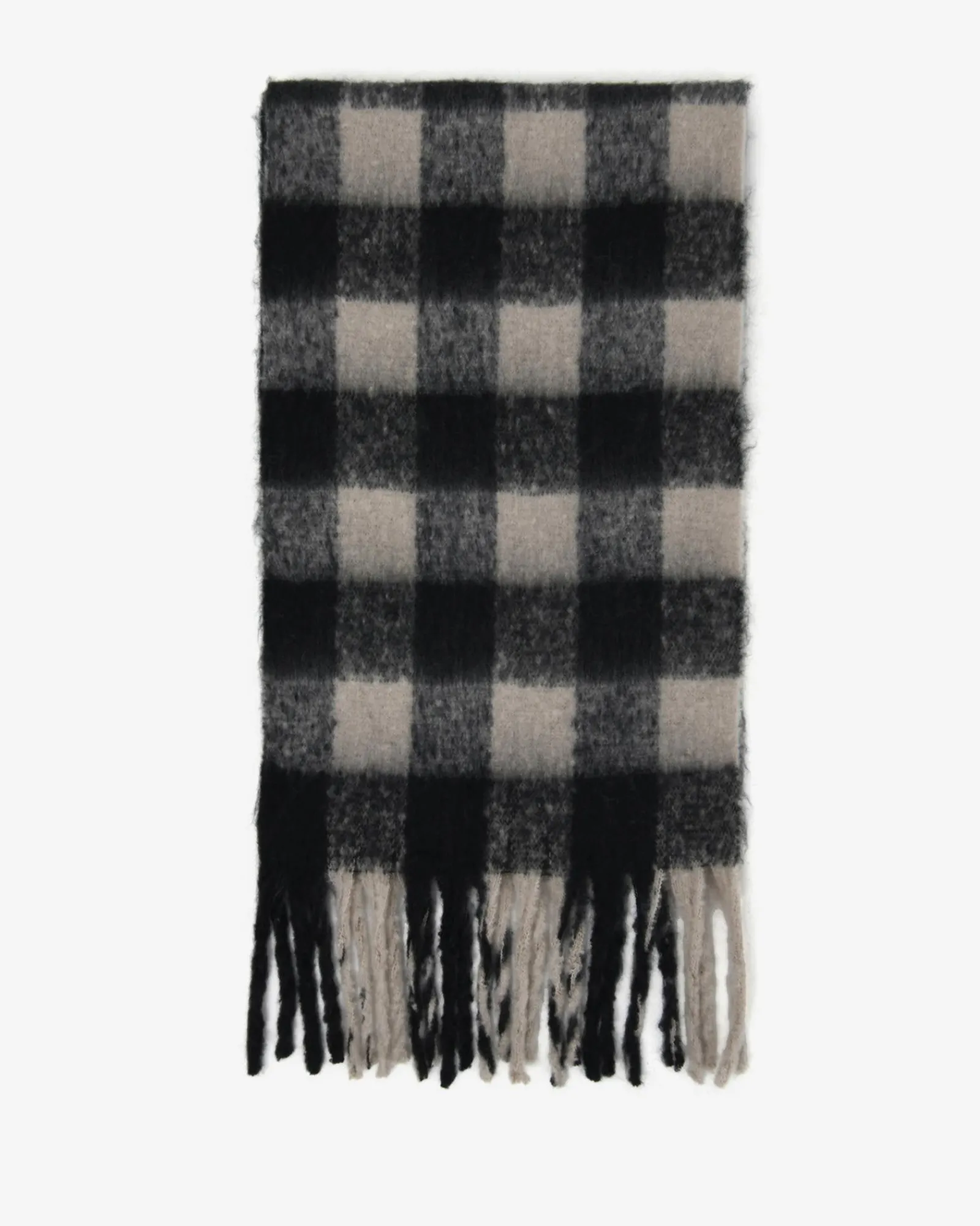 Snuggle up in style with the Elle Checked Scarf. Crafted from ultra-soft fabric and adorned with a timeless check pattern,it’s the perfect blend of warmth and style.