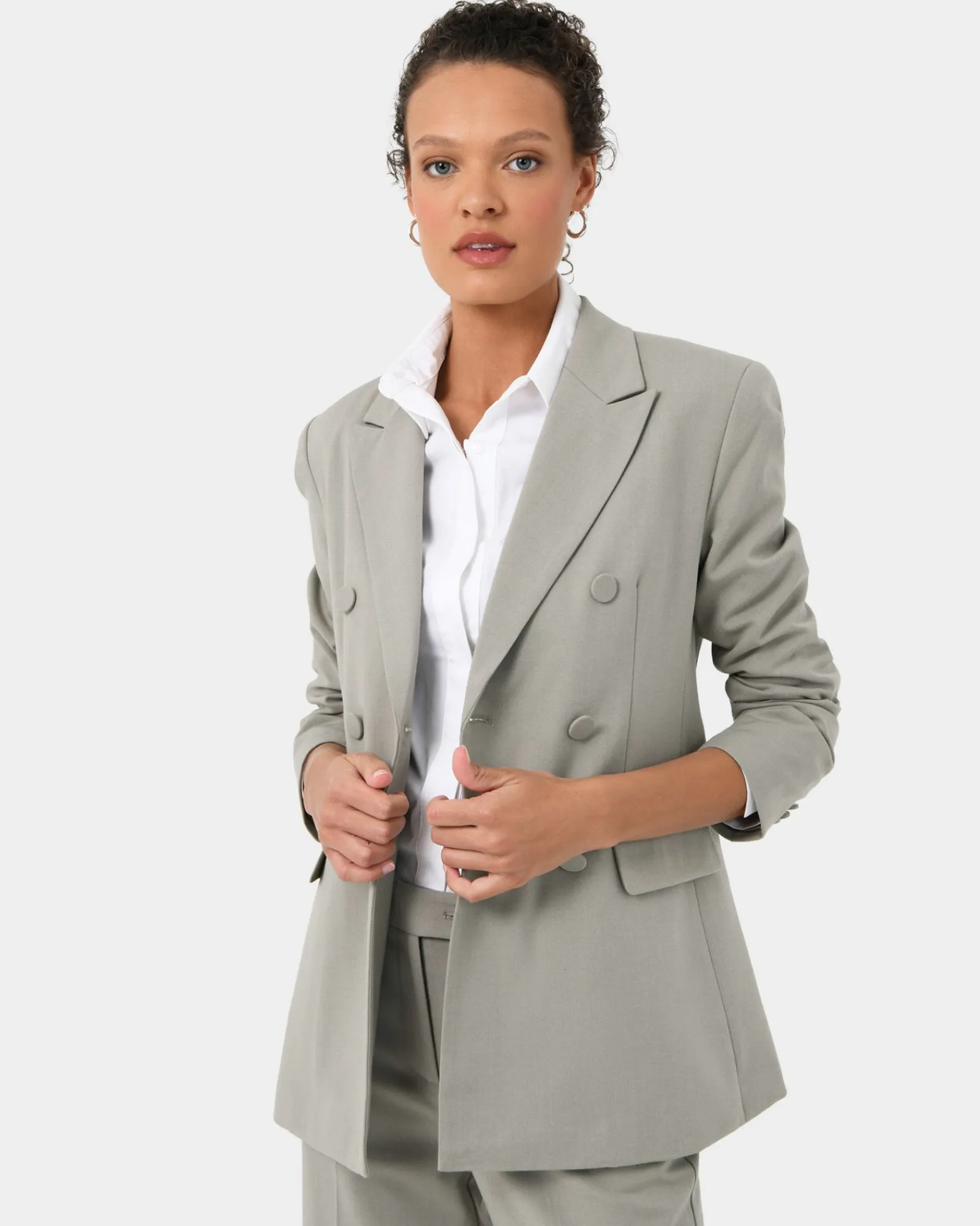 Elevate your workwear with the Emani Double Breasted Blazer. With a sleek and refined design, it is a modern piece that embraces timeless sophistication.