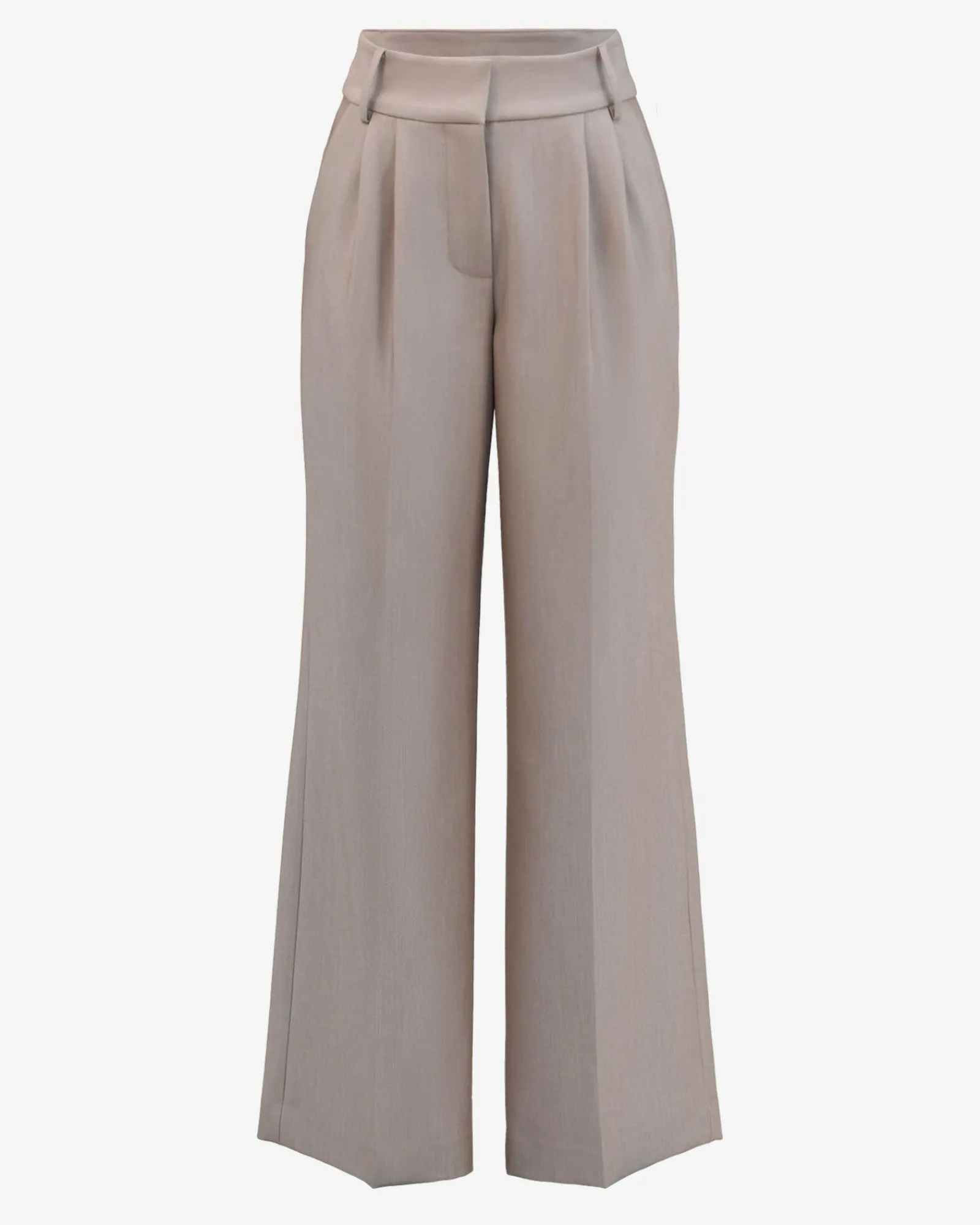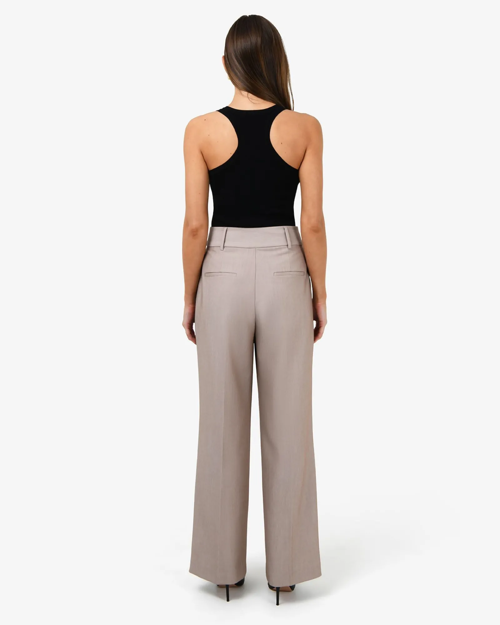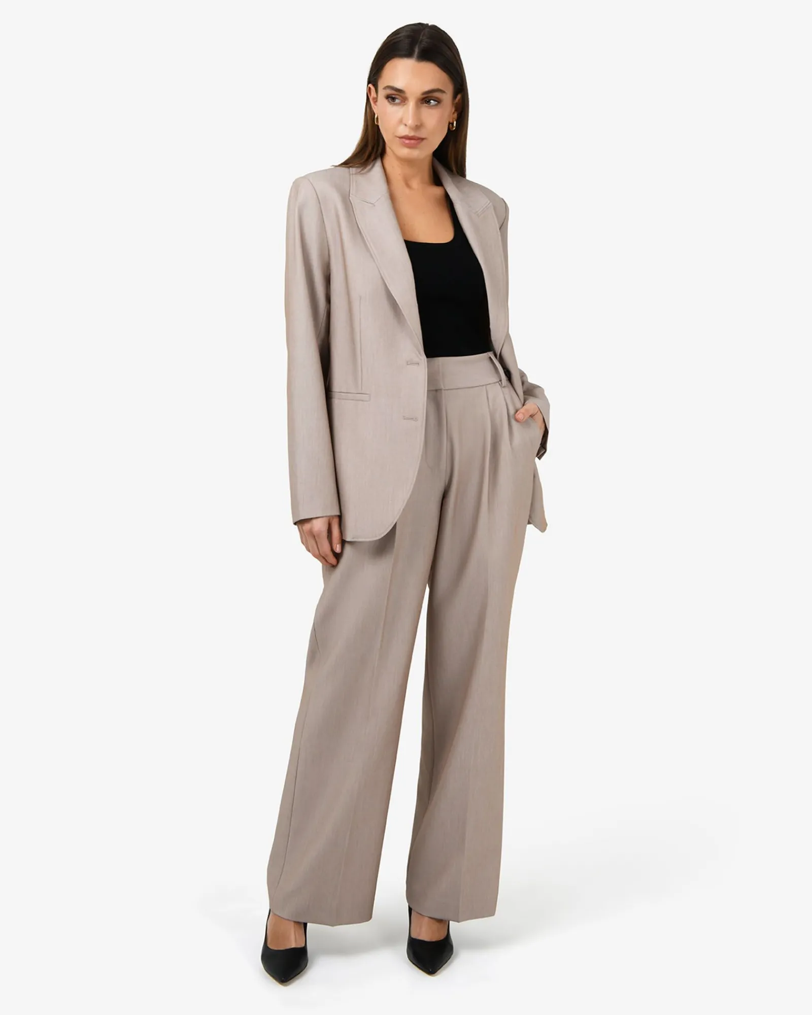 The Fitzroy Pleated Pants take classic suiting and make it feel effortless. A high waist and wide-leg shape create a clean, elongated line, while sharp double pleas add a tailored finish. Made from a medium-weight stretch fabric that offers ease and flexibility, they balance between structure and comfort – easy to wear from the office to after-hours.