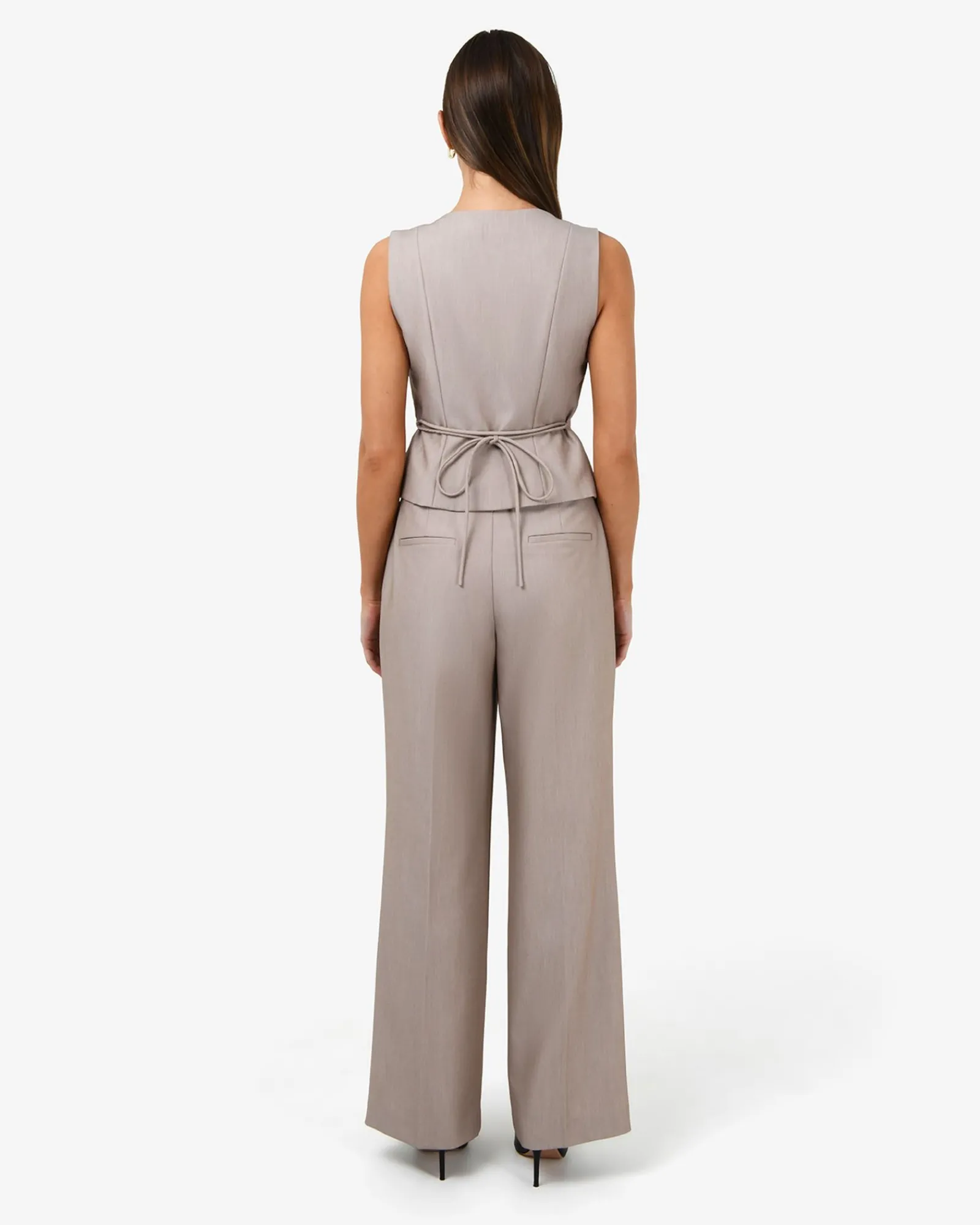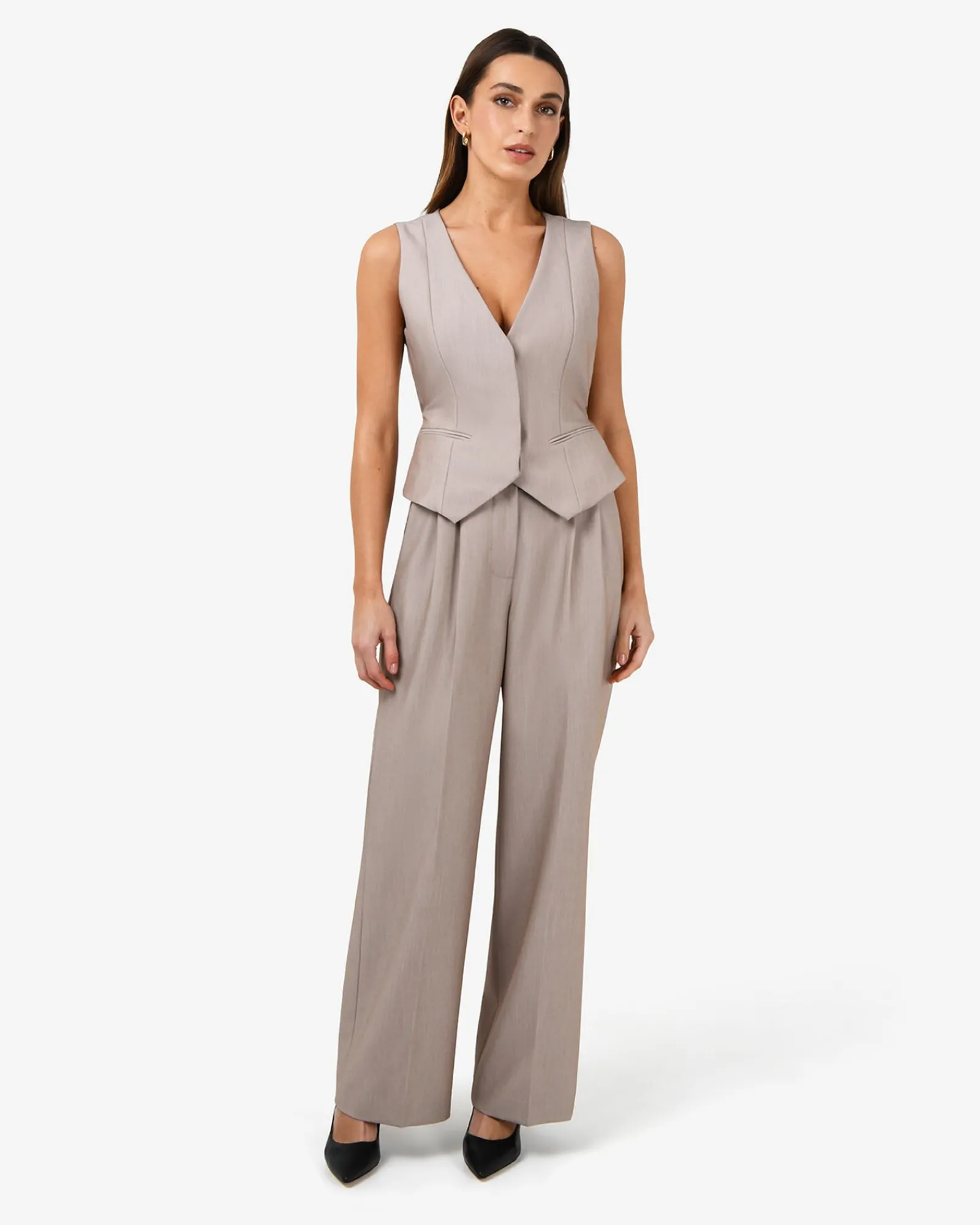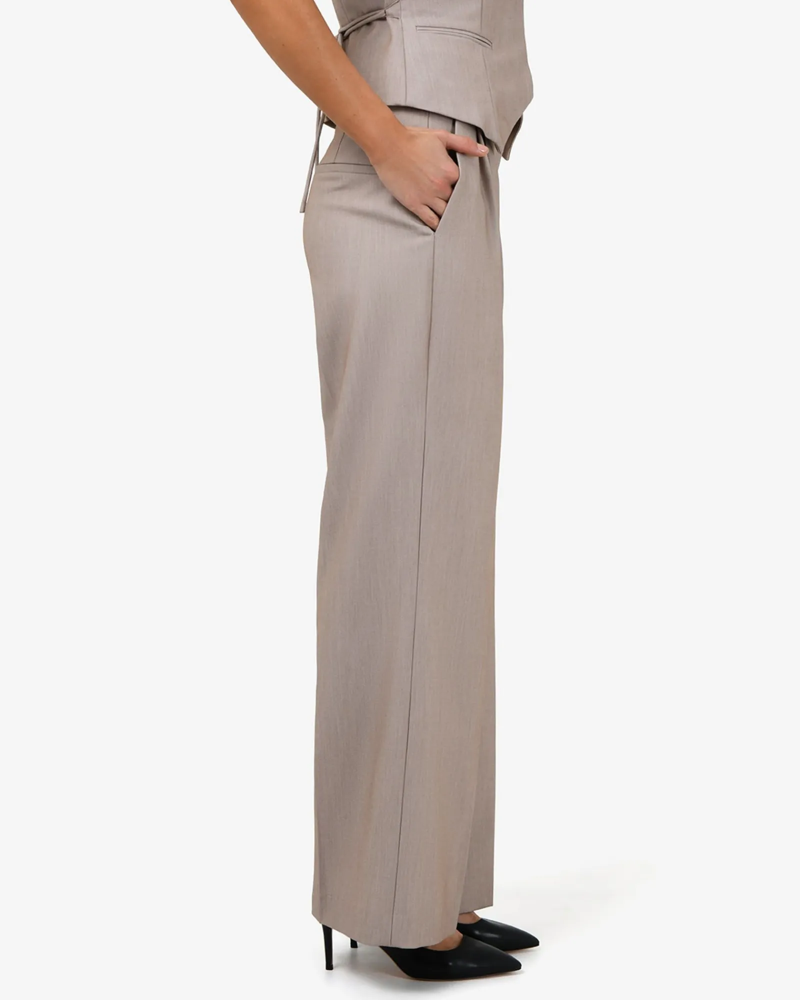 The Fitzroy Pleated Pants take classic suiting and make it feel effortless. A high waist and wide-leg shape create a clean, elongated line, while sharp double pleas add a tailored finish. Made from a medium-weight stretch fabric that offers ease and flexibility, they balance between structure and comfort – easy to wear from the office to after-hours.