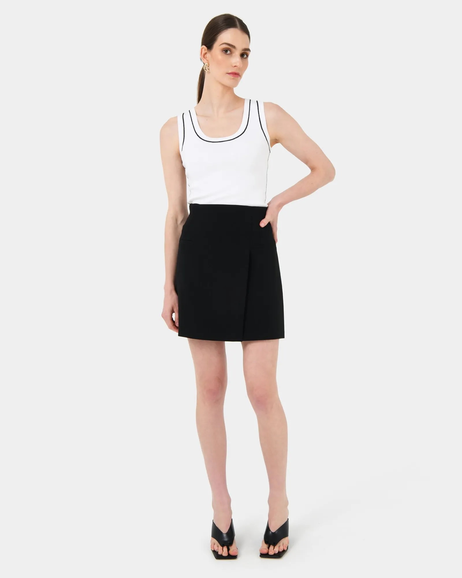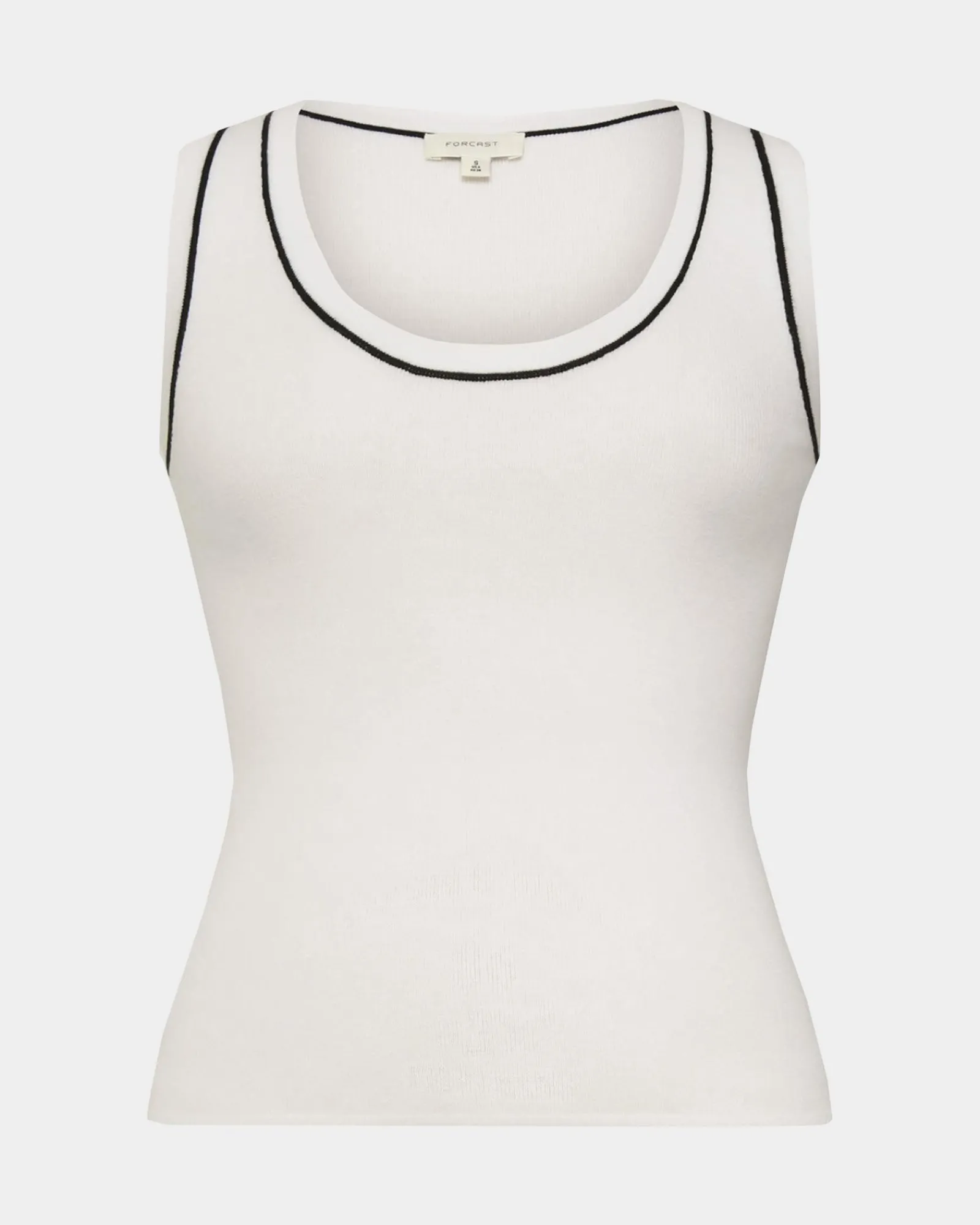 The timeless Gloria Contrast Knit Top is a must-have staple for every season. Crafted from ribbed knit fabric, it offers a comfortable fit that flatters your silhouette, while the contrasting black trim adds a sporty, chic touch. The sleeveless design makes it ideal for layering or wearing solo, and the round neckline enhances its versatile, stylish appeal.