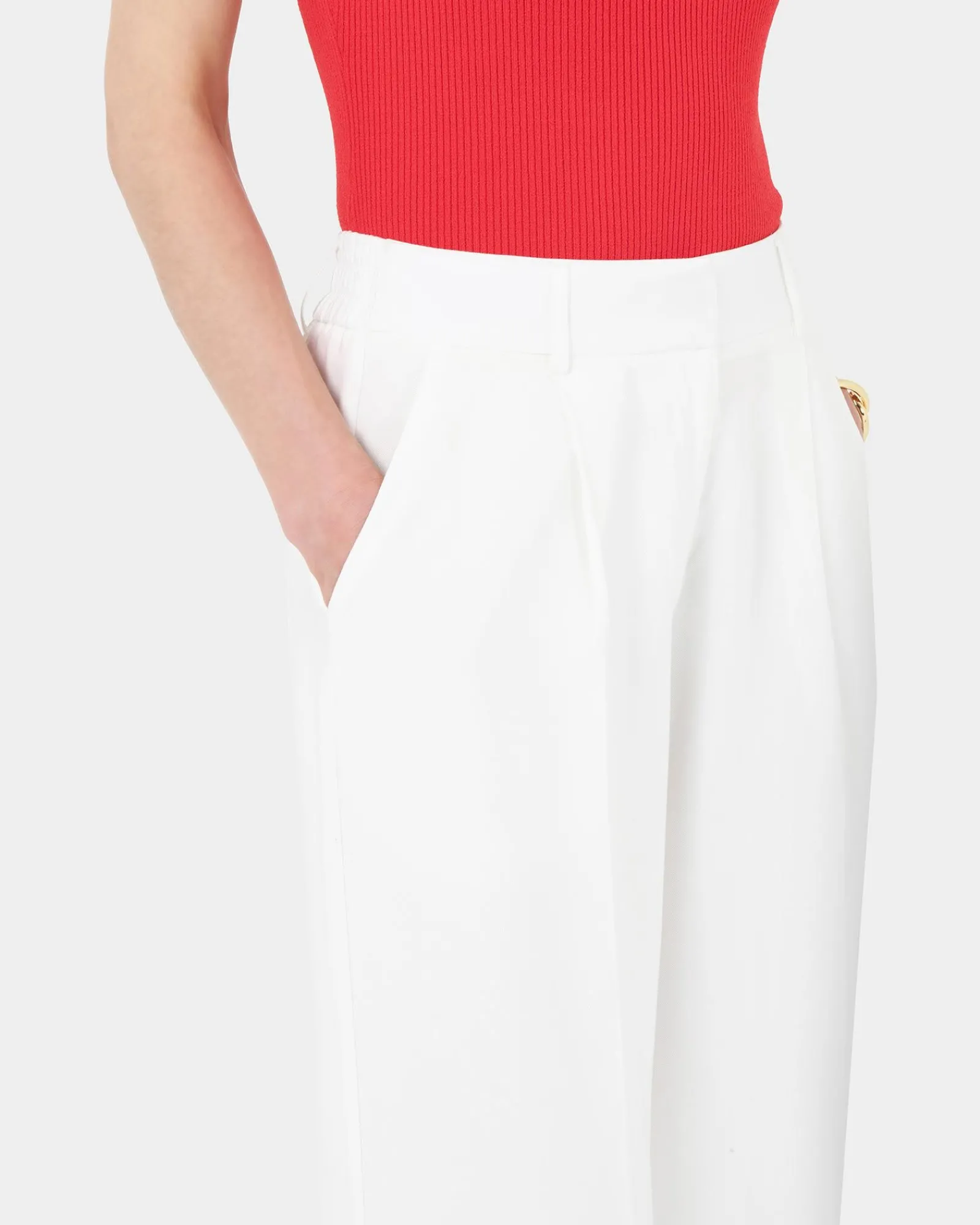 - Elastic back at waistband with belt loops