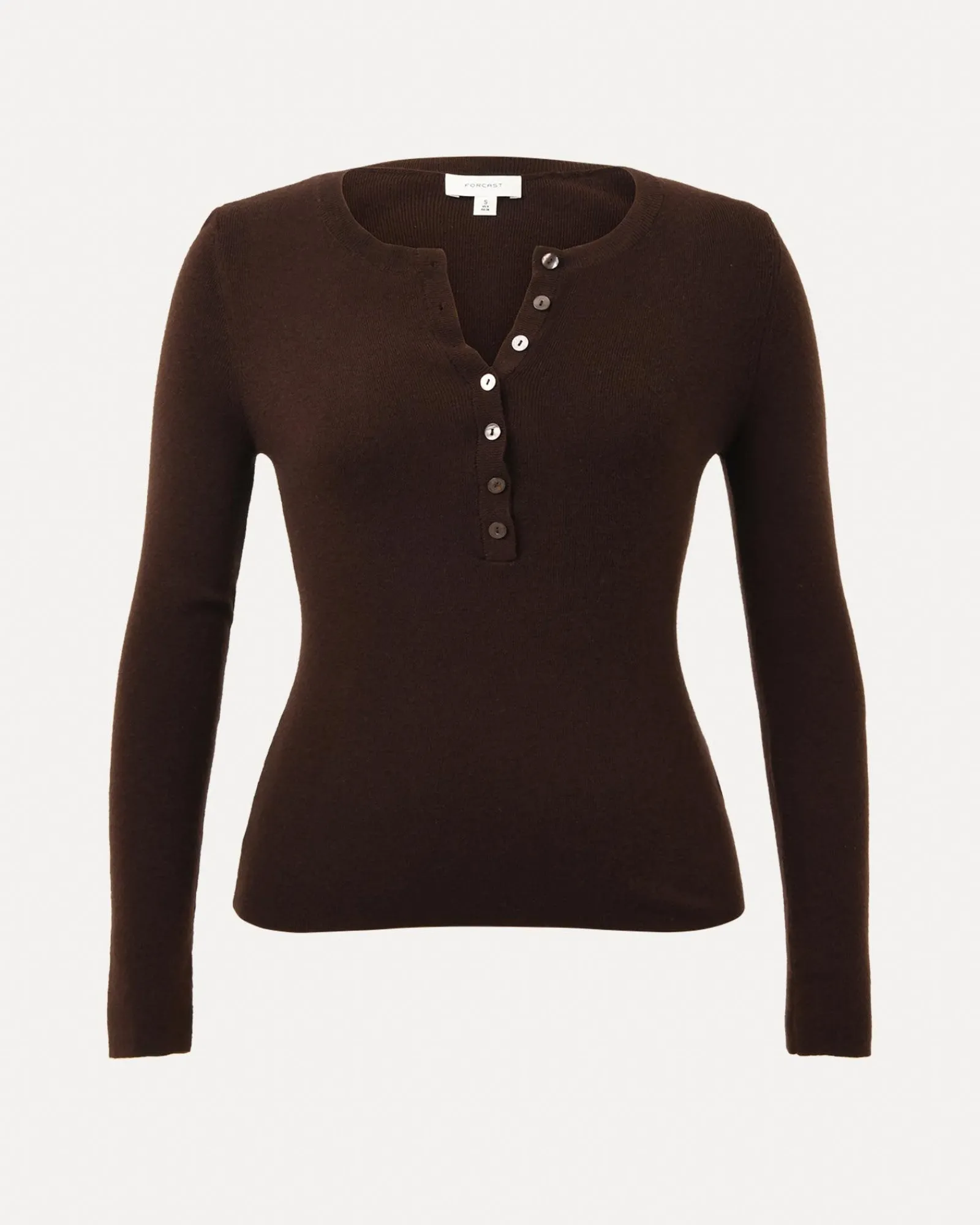 - Front placket with shell buttons