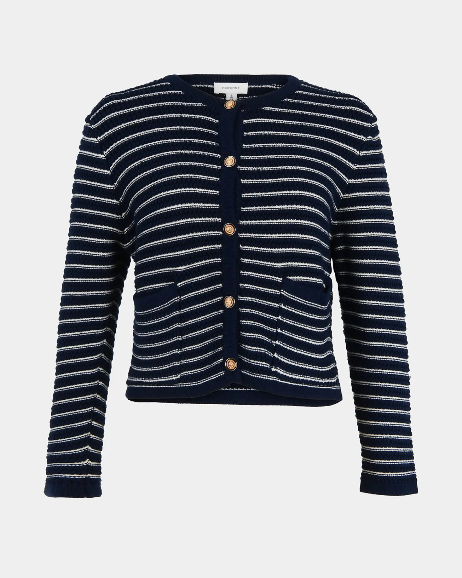 The Hollis Textured Cardigan is the transeasonal wardrobe hero. Designed with embossed gold tone buttons and woven in a luxurious textured knit, this cropped cut cardigan can be worn as a top or open as a jacket.