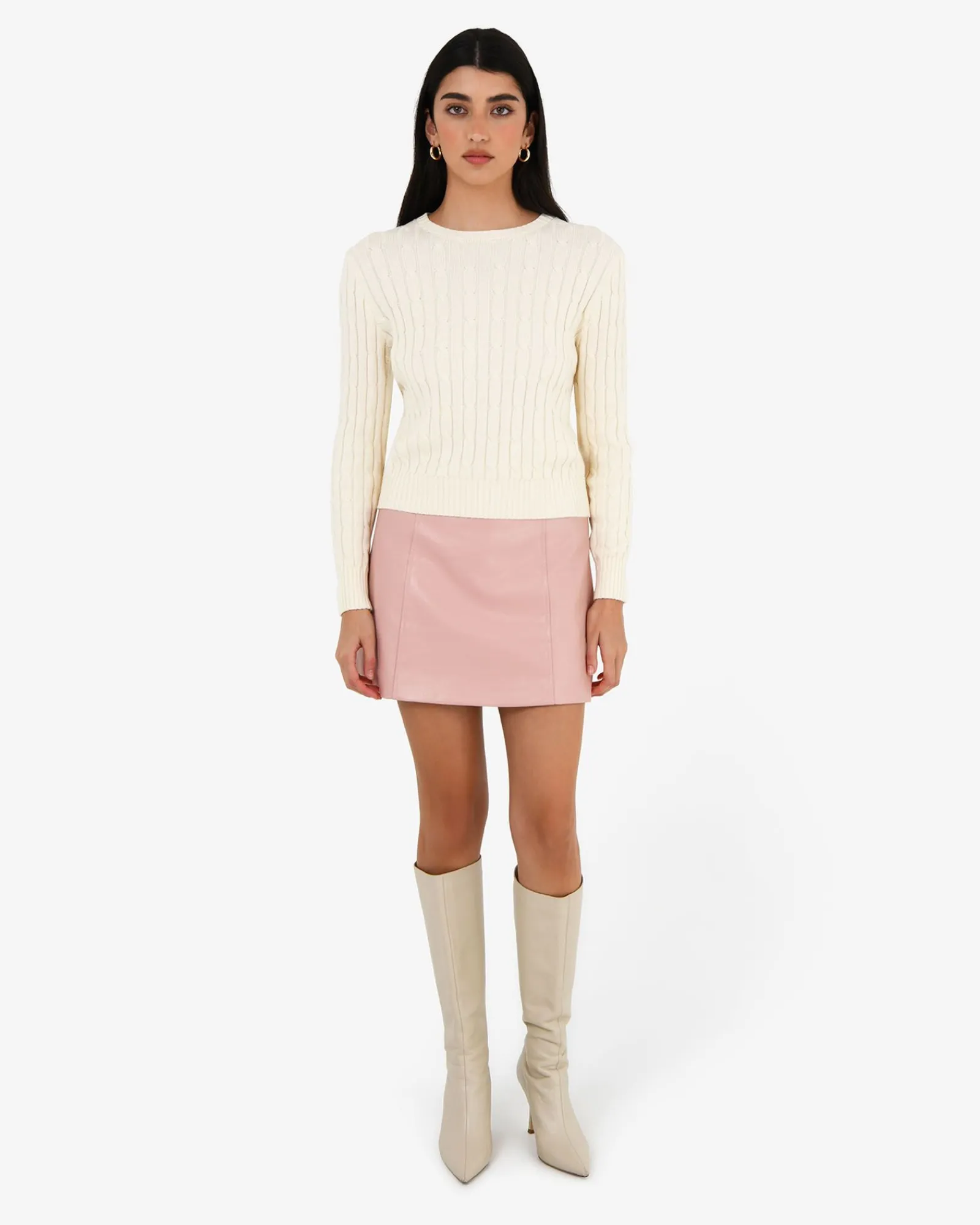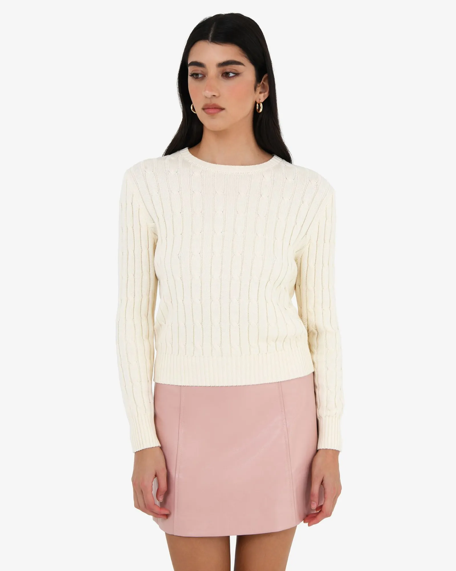Cozy up in the Juanita Cotton Cable Knit. Crafted from soft cotton, it’s the perfect piece for transitioning between seasons, a timeless wardrobe staple that effortlessly blends comfort and style.