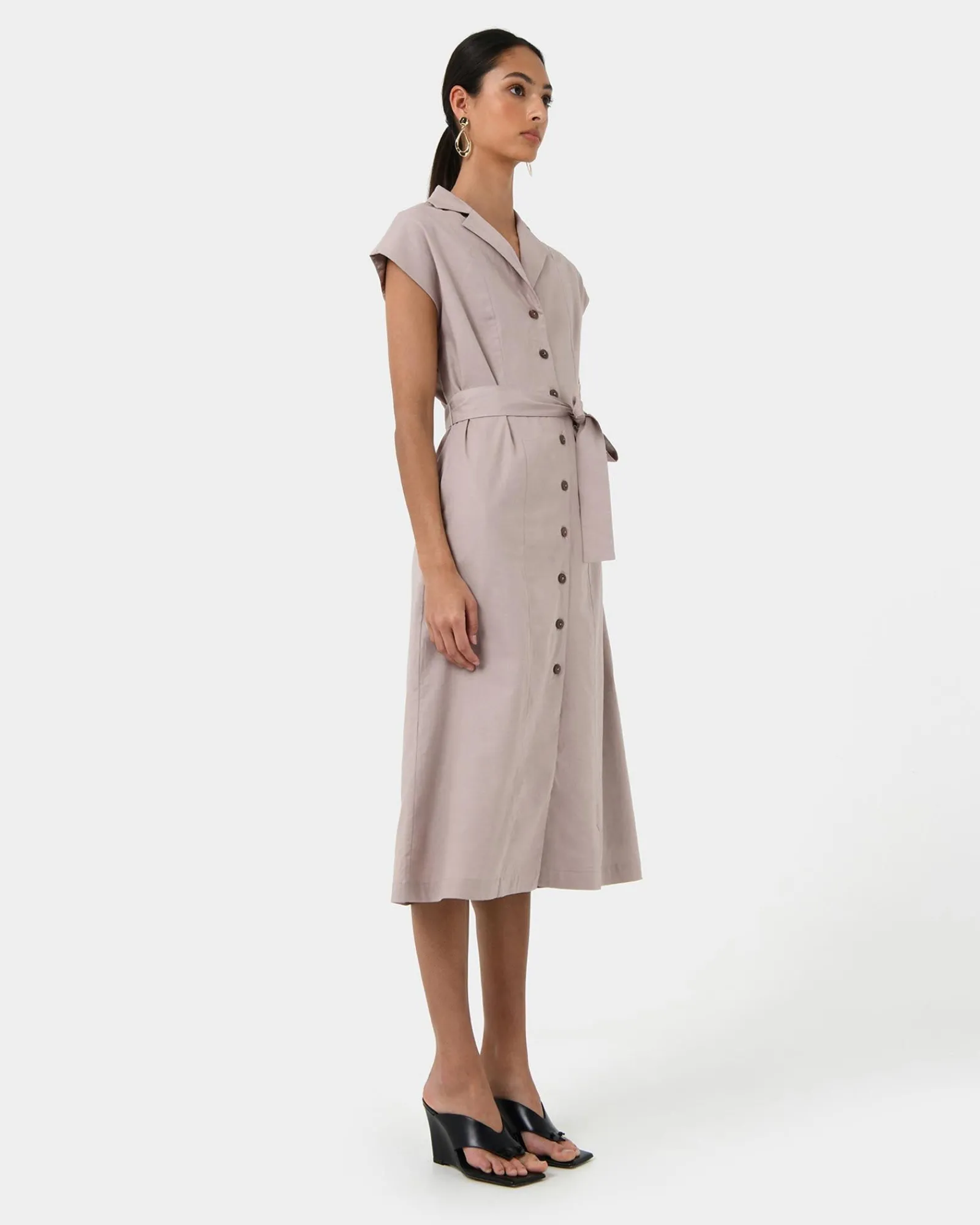 - Matching self-tie waist belt