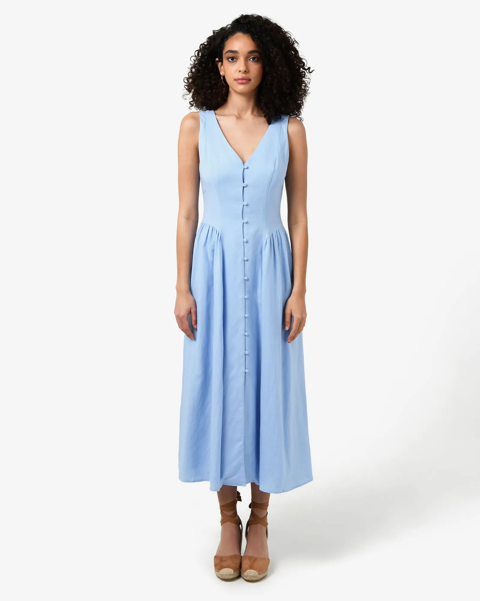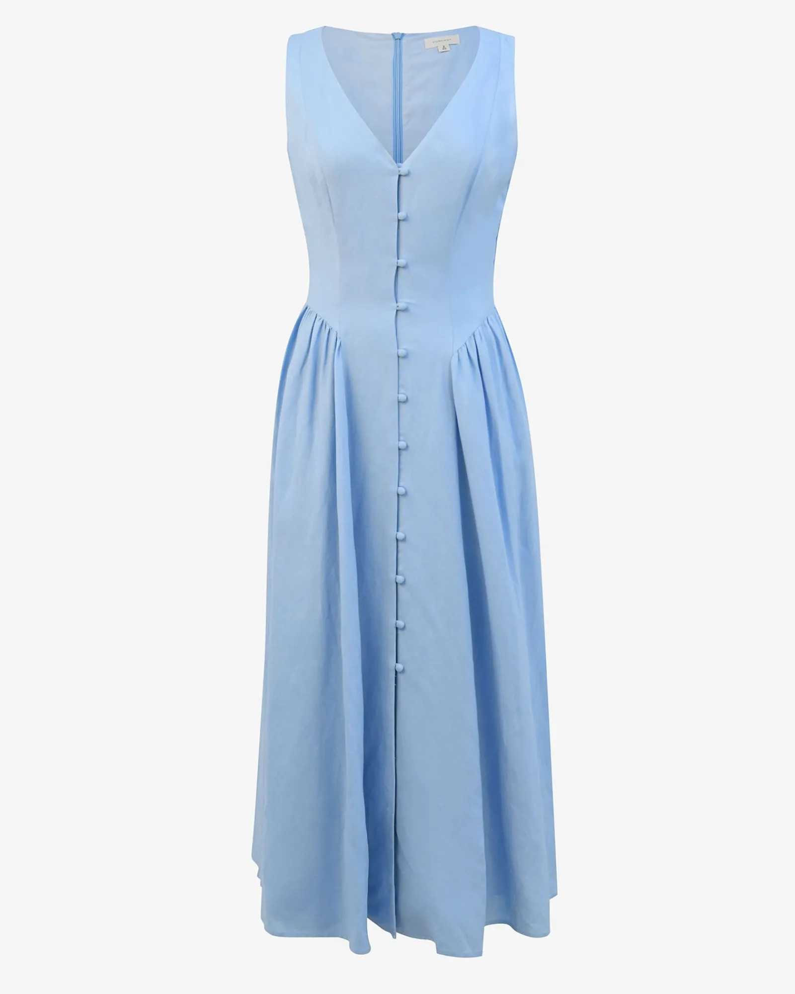 The Kendal Linen Blend Dress features a sleeveless design with a V-neckline, invisible back zipper and functional front loop buttons, while the lined midi skirt is finished with side gathering panels. The dress can be dressed up or down for both casual and occasion wear – style with your favourite accessories to complete the look.