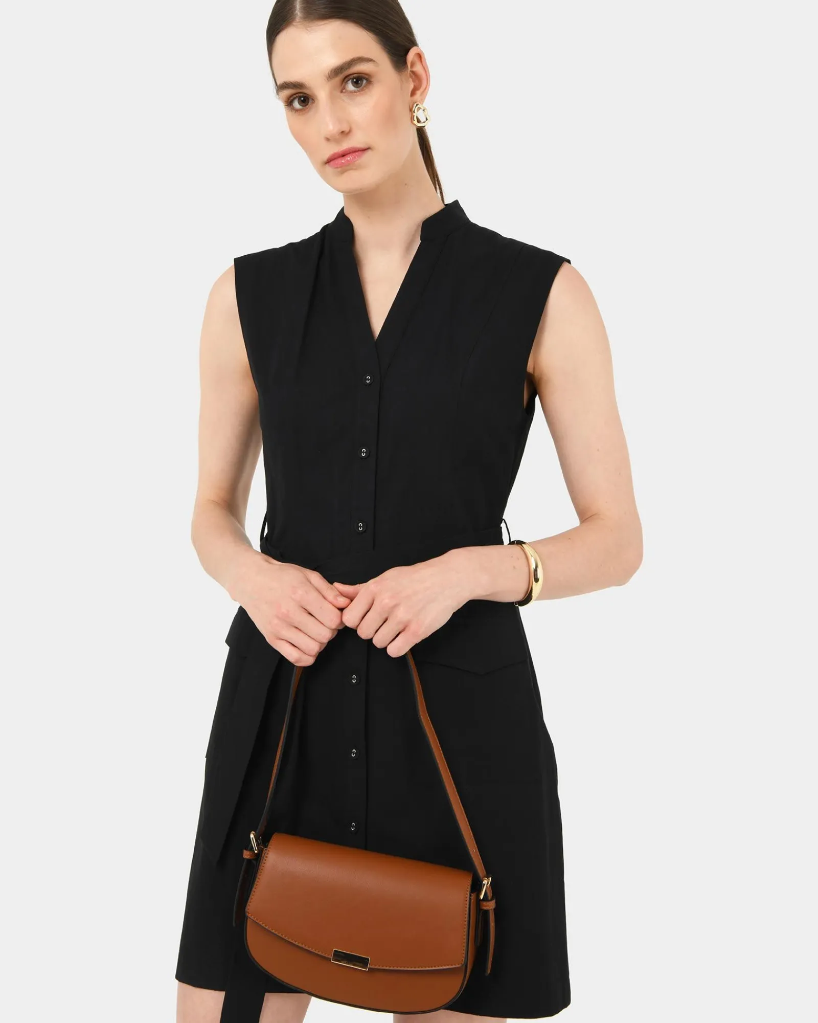 This Kiran Utility Tie Dress effortlessly combines versatility and style, making it a must-have for warm-weather outfits. Designed with a classic shirtwaist silhouette, it features a flattering belted waist and a timeless mandarin collar. Functional details like two front patch pockets makes it a practical wardrobe essential. Whether you’re headed to casual outings, workdays, or weekend brunches, this versatile piece adapts to any occasion. Dress it up with heels and statement jewelry for a night out or keep it laid-back with sandals.