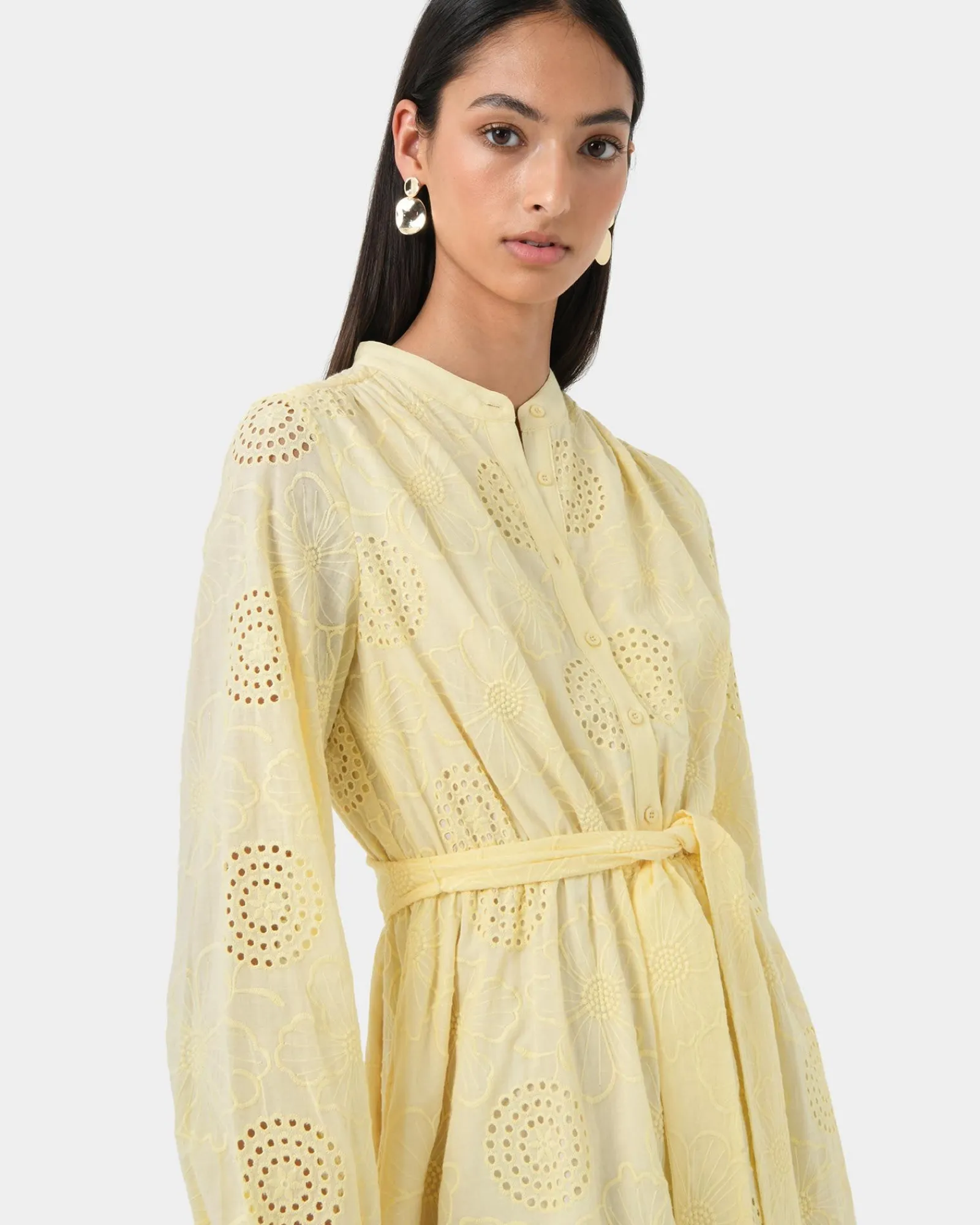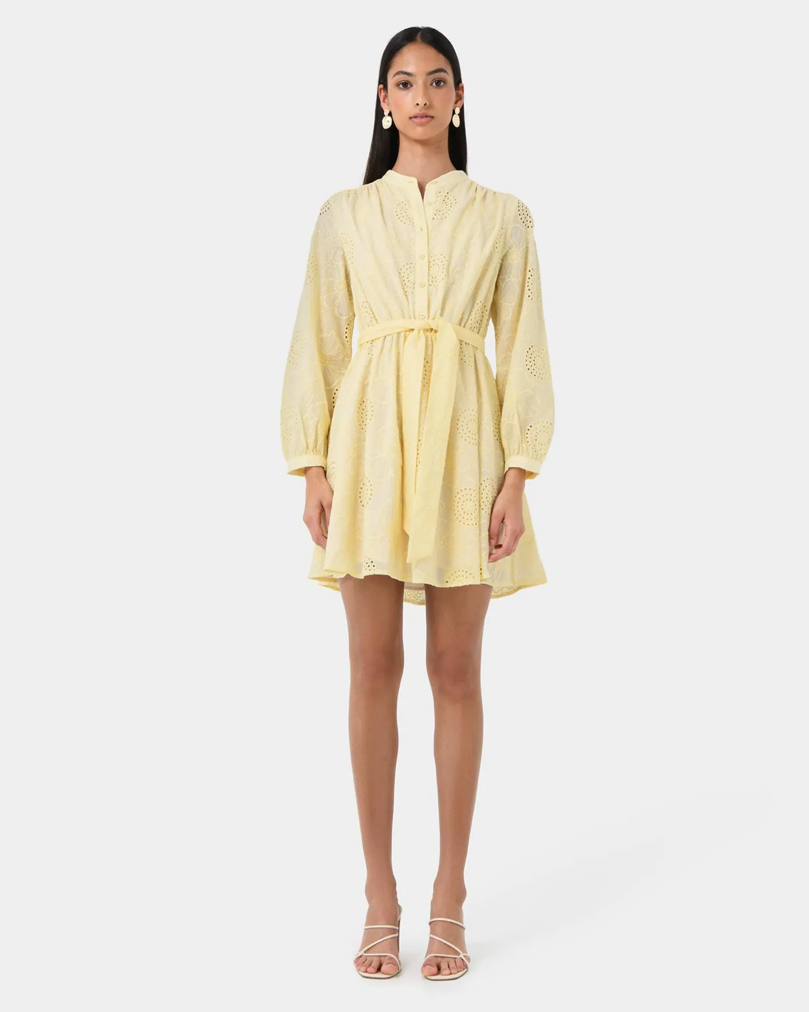 Elevate your summer style with the Lea Cotton Tie Dress. Crafted from soft cotton and adorned with delicate eyelet embroidery, this dress is the epitome of effortless chic. The tie waist cinches your figure, while the long sleeves add a touch of sophistication.