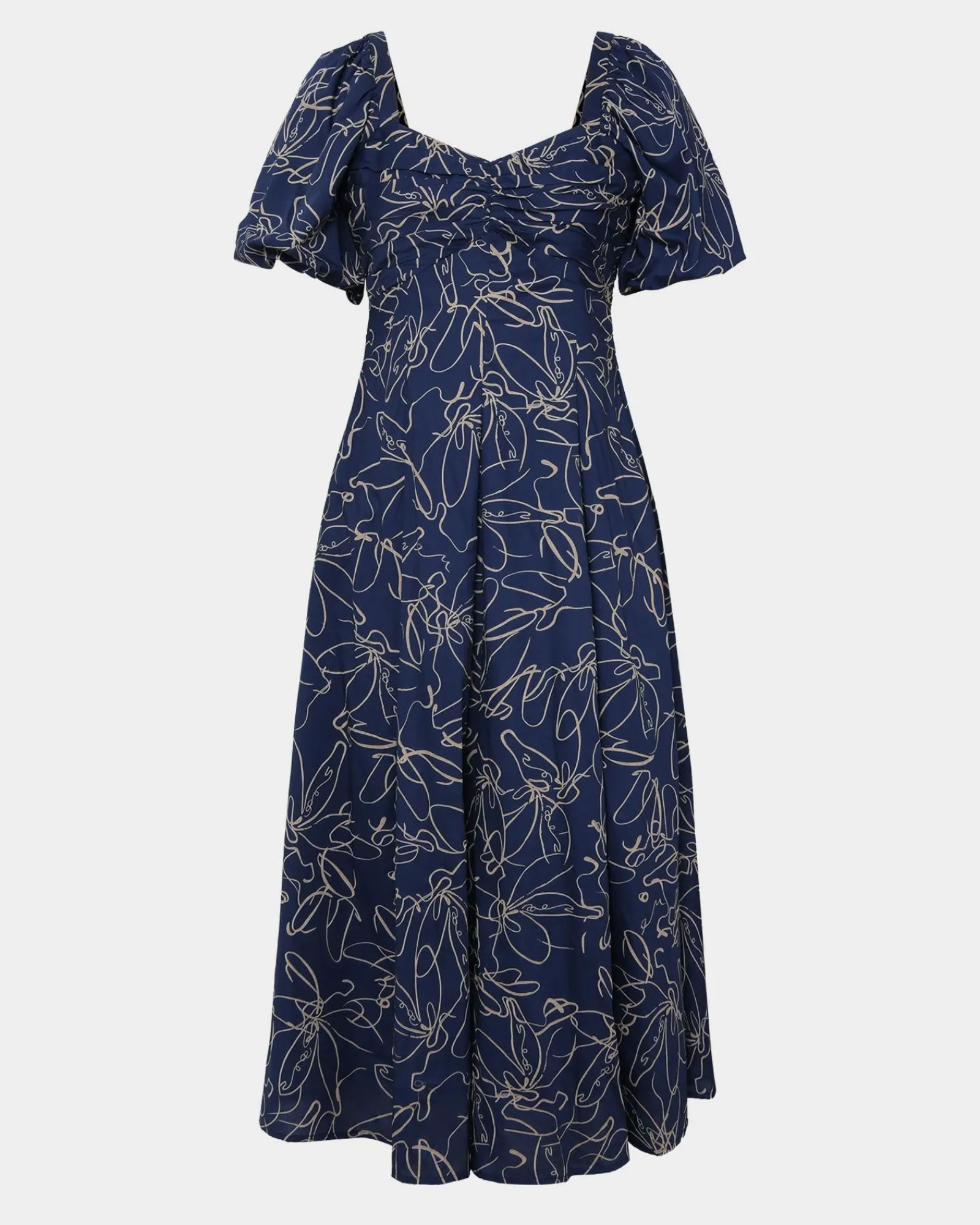 Introducing the Leen Puff Sleeve Midi Dress—a perfect blend of elegance and coastal charm. Featuring airy puff sleeves and a flattering silhouette, this summer dress transitions seamlessly from day to night, blending modern style with coastal charm.