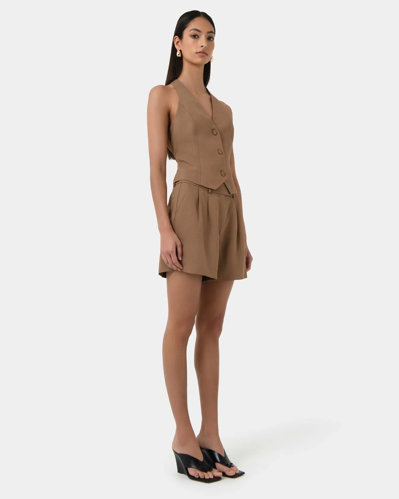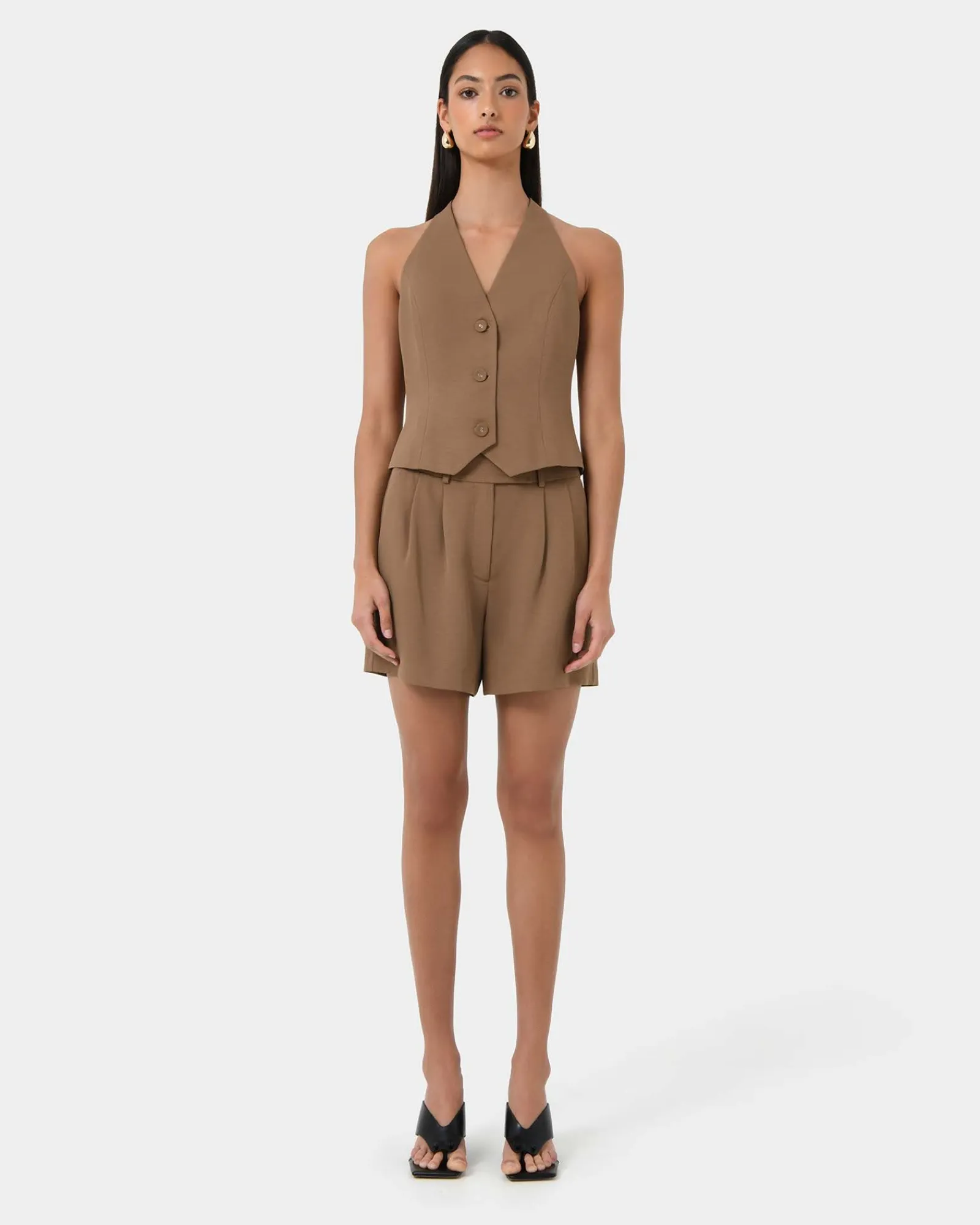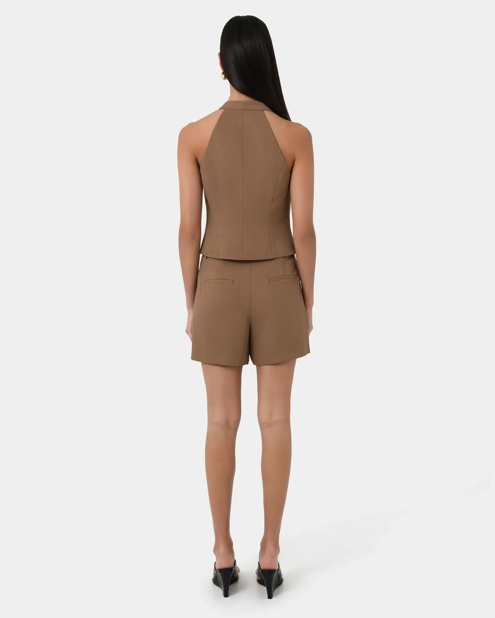 Redefine sophistication with the Lexee Tailored Vest. A modern twist on classic design, it features a unique halter neck cut that adds a contemporary edge to your look.