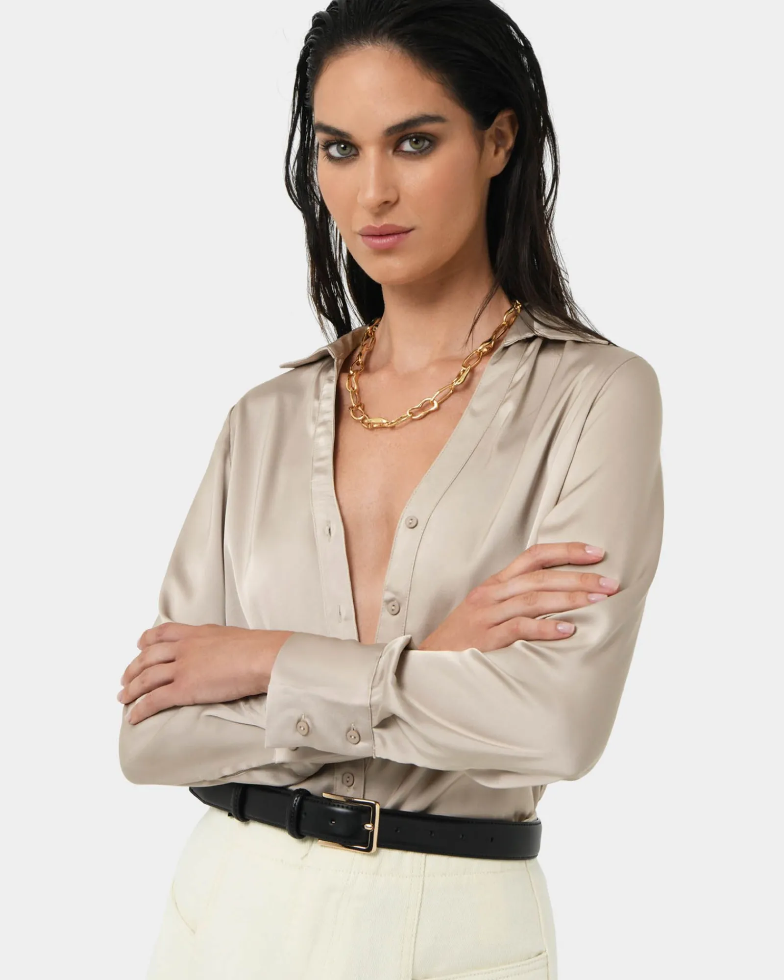 The Lila V-Neck Satin Blouse is the perfect piece to elevate your style with minimal effort. With a flattering V-neckline and a classic button-front design, this blouse adds a refined touch. Its long sleeves and adjustable cuffs make it perfect for year-round wear, whether you’re dressing up for work or keeping it casual on weekends. Pair with trousers for the office or jeans for a casual day out.