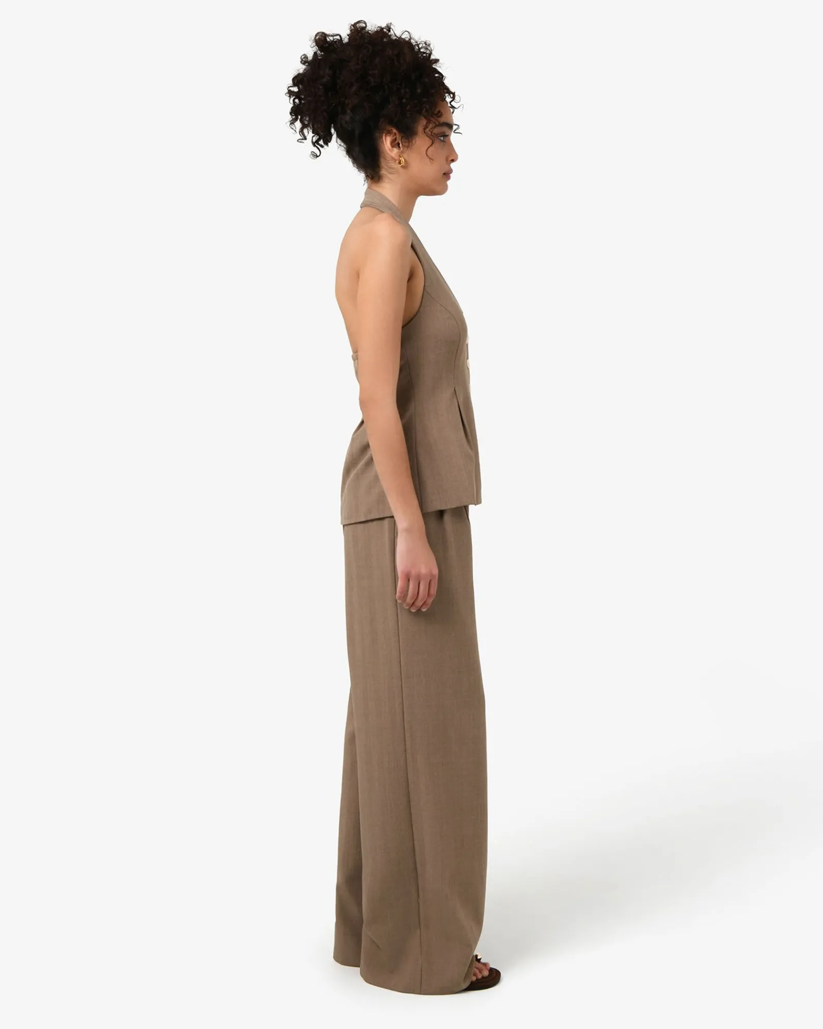 The Lola Lurex Blend Wide Leg Pant features classic tailoring with a high-rise waist, double front pleats, and a wide-leg silhouette. Finished with a tailored waistband, side pockets, and back darts, Pair it with the matching Lola Halter Neck Peplum Vest for a coordinated set, or style it with fitted tops, blouses, or blazers for versatile dressing.