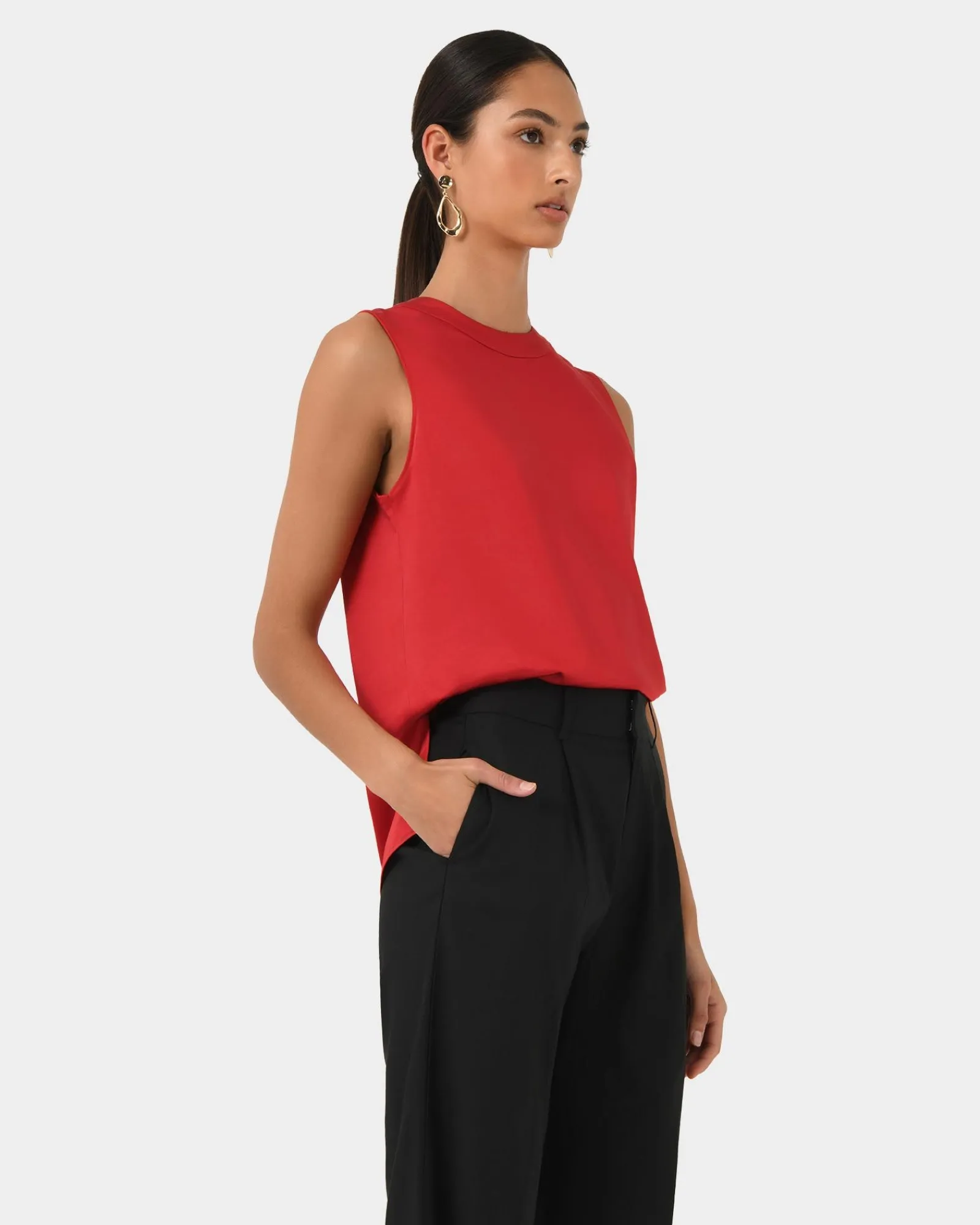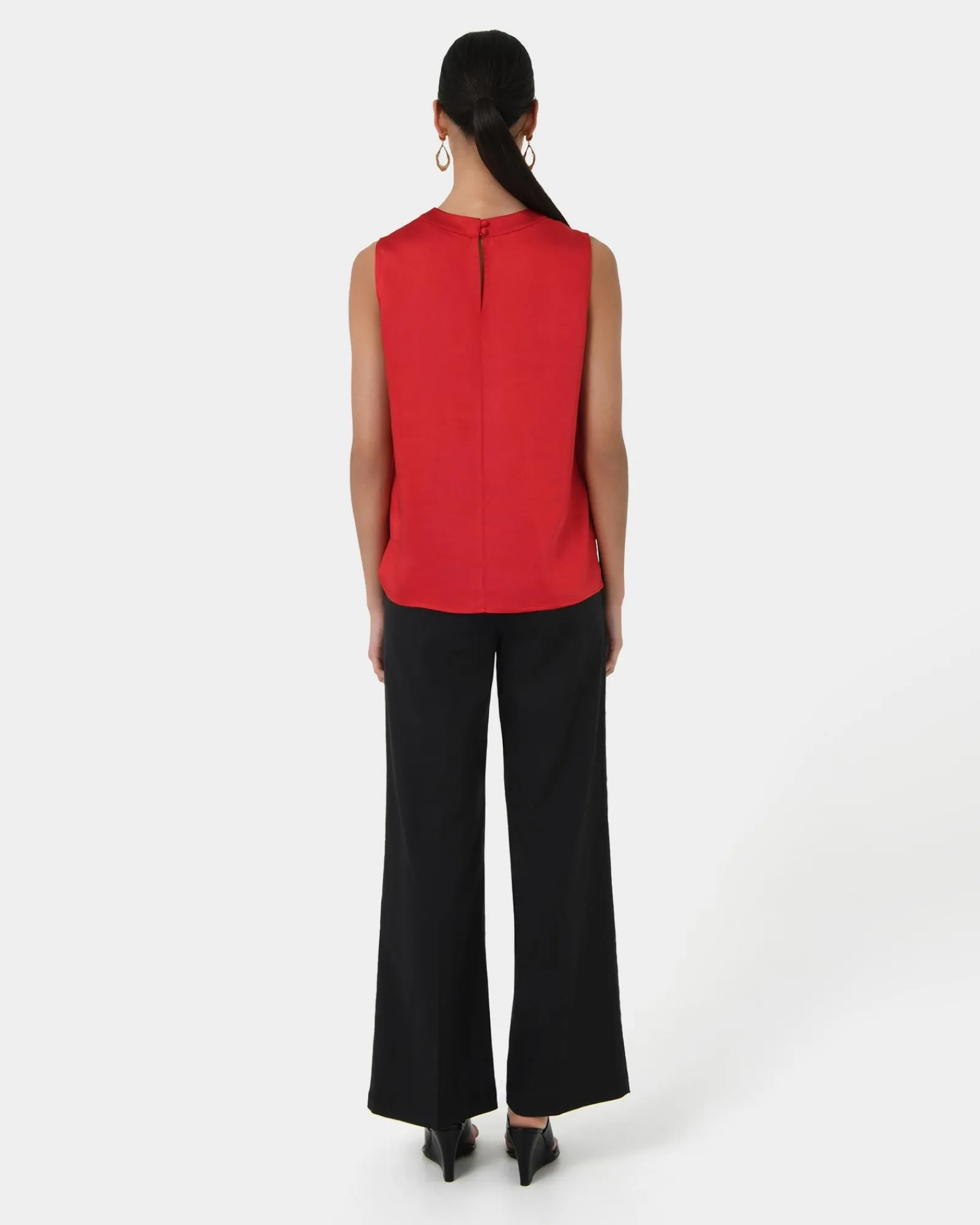 This sleek Louisa Round Neck Satin Top crafted from satin for a touch of effortless elegance. Features a classic crew neckline and a straight hemline, making it a versatile piece that can be dressed up or down. Dress it up with tailored trousers and heels or keep it casual with denim and flats.