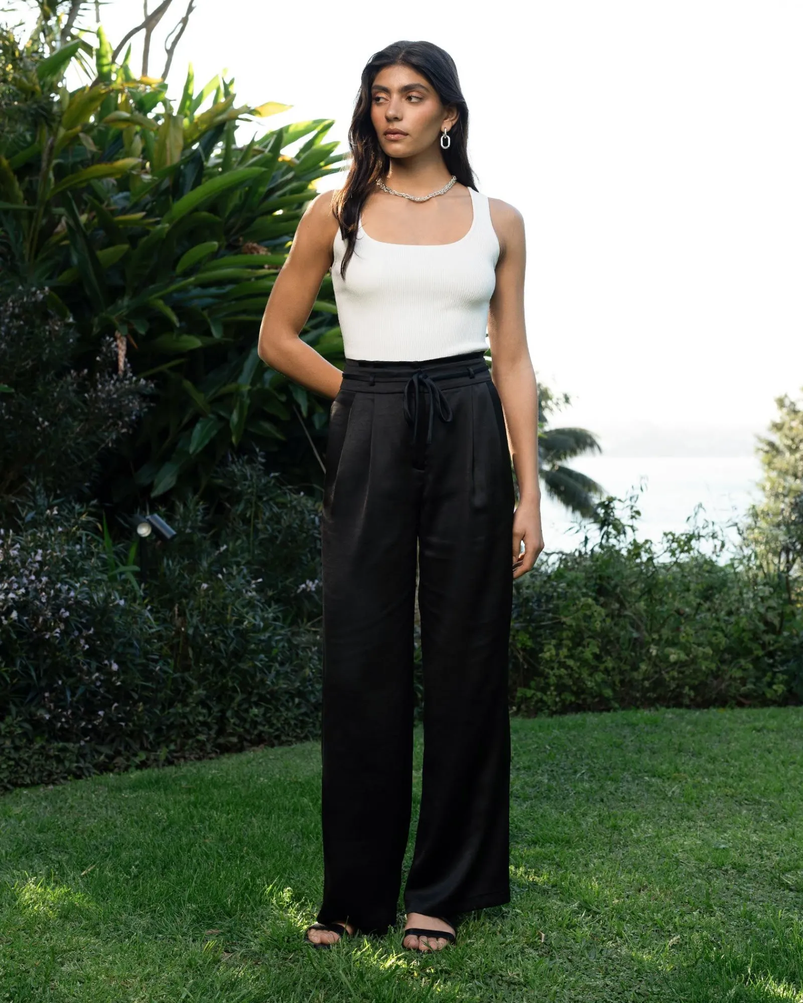 Elevate your everyday style with the Louisa Wide Leg Satin Pants, featuring a paper bag waist and a wide leg silhouette. These pants combine comfort and sophistication, making them ideal for both casual outings and evening events. Pair with a sleek blouse for an effortless chic look.