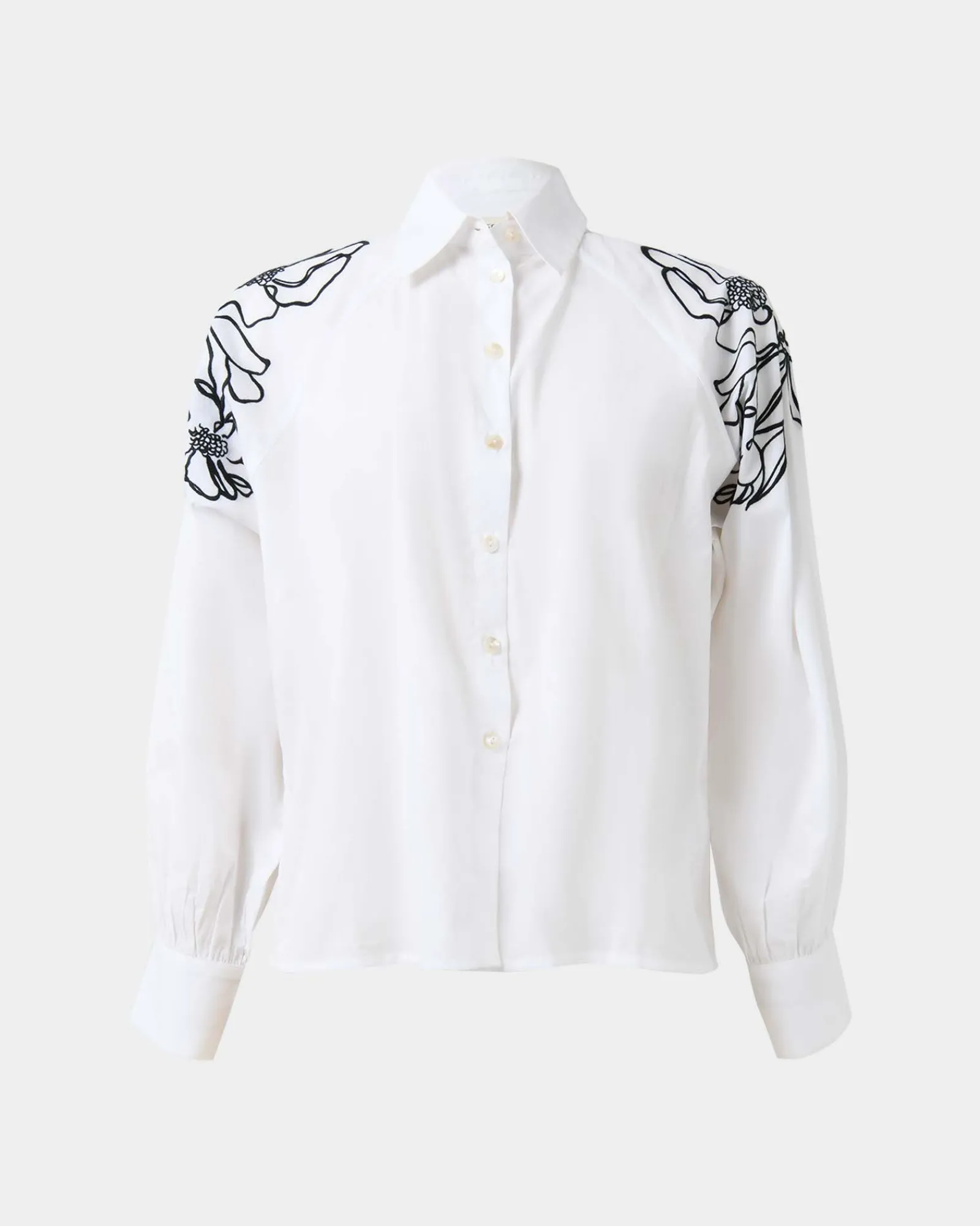 Timeless, breathable, and beautifully detailed, the Maren Embroidered Cotton Shirt is made from 100% soft, airy cotton for all-day comfort with a slightly relaxed fit. It features floral embroidery, a button-down front, long sleeves and button cuffs. This classic white shirt effortlessly pairs with both casual and dressy looks.