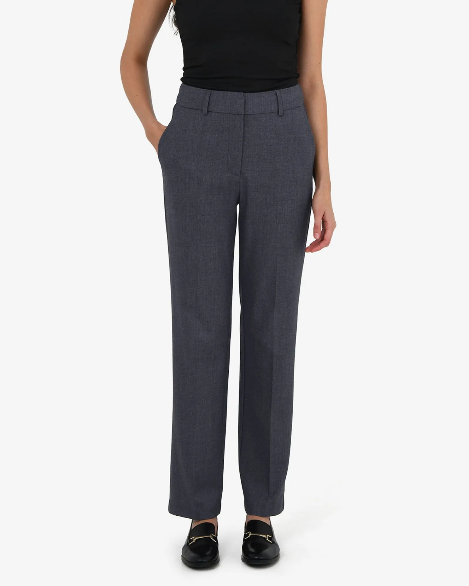Smart and sleek, your everyday power pants. The Merid Tailored Pants bring ease to professional dressing with a clean, straight-leg silhouette structured feel. Featuring a fixed waistband, belt loops, and functional pockets, pair them with the matching Merid Double Breasted Blazer for a sharp set, or dress them down with a relaxed knit and loafers for effortless weekday style.