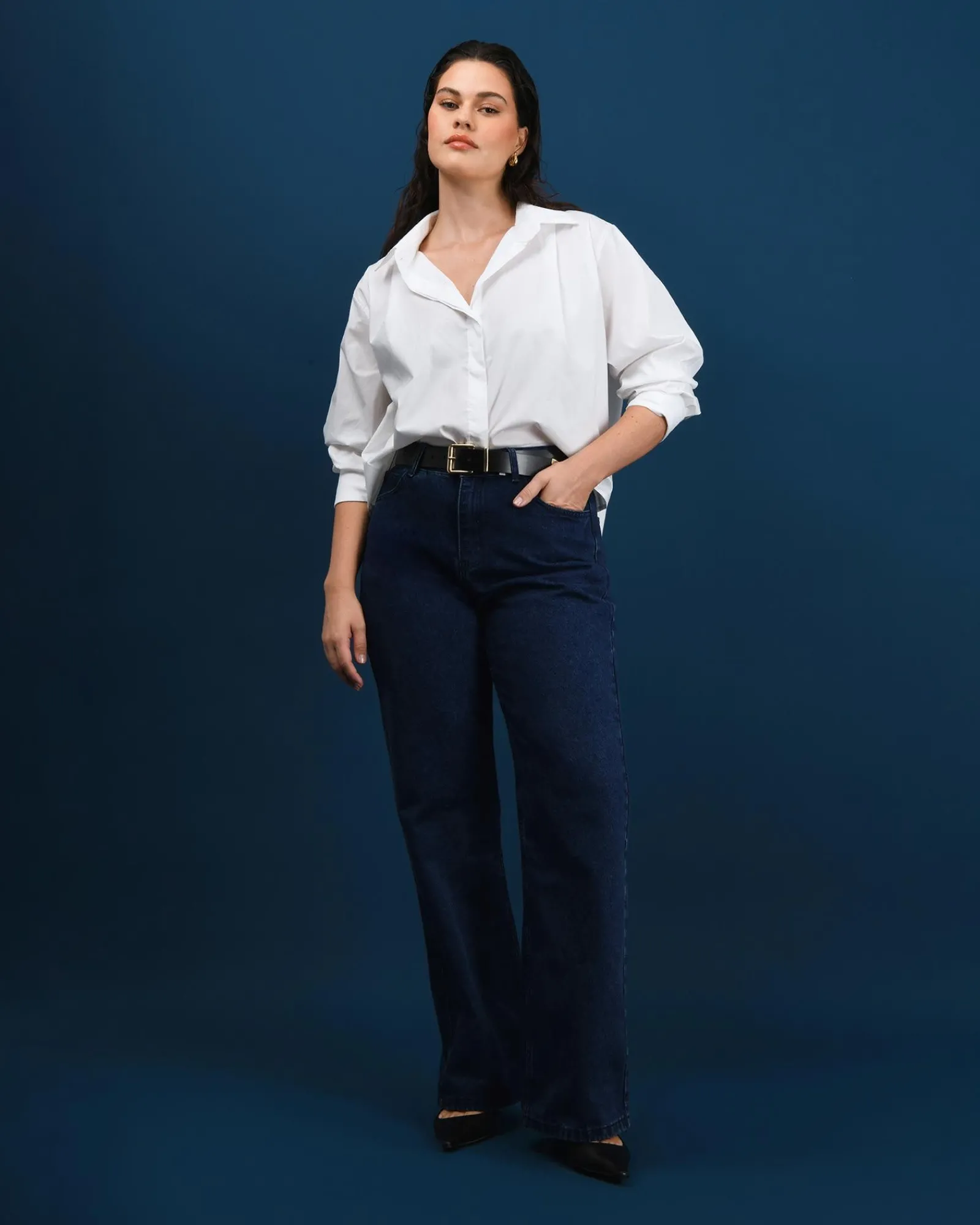 - Dark wash denim
