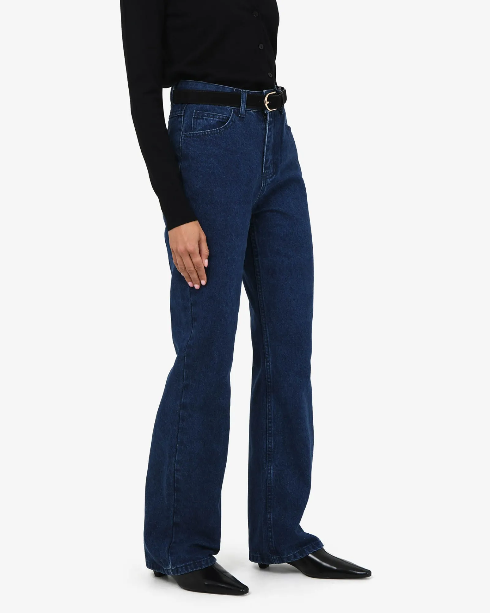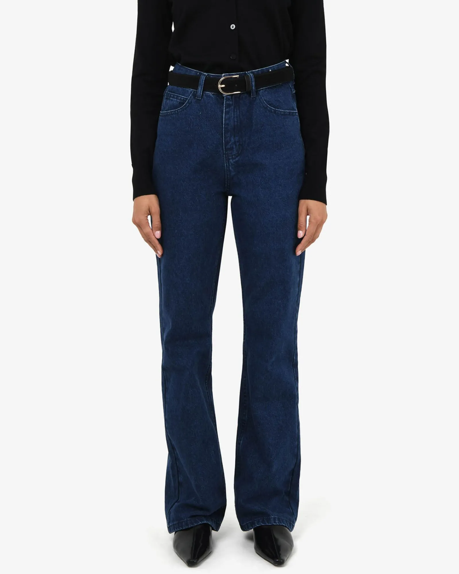 A denim essential – introducing the Merith Bootcut Jeans, featuring a mid-rise waist, vintage-inspired wash, and bootcut silhouette. Pair with your favorite knit or blazer for an easy chic look.