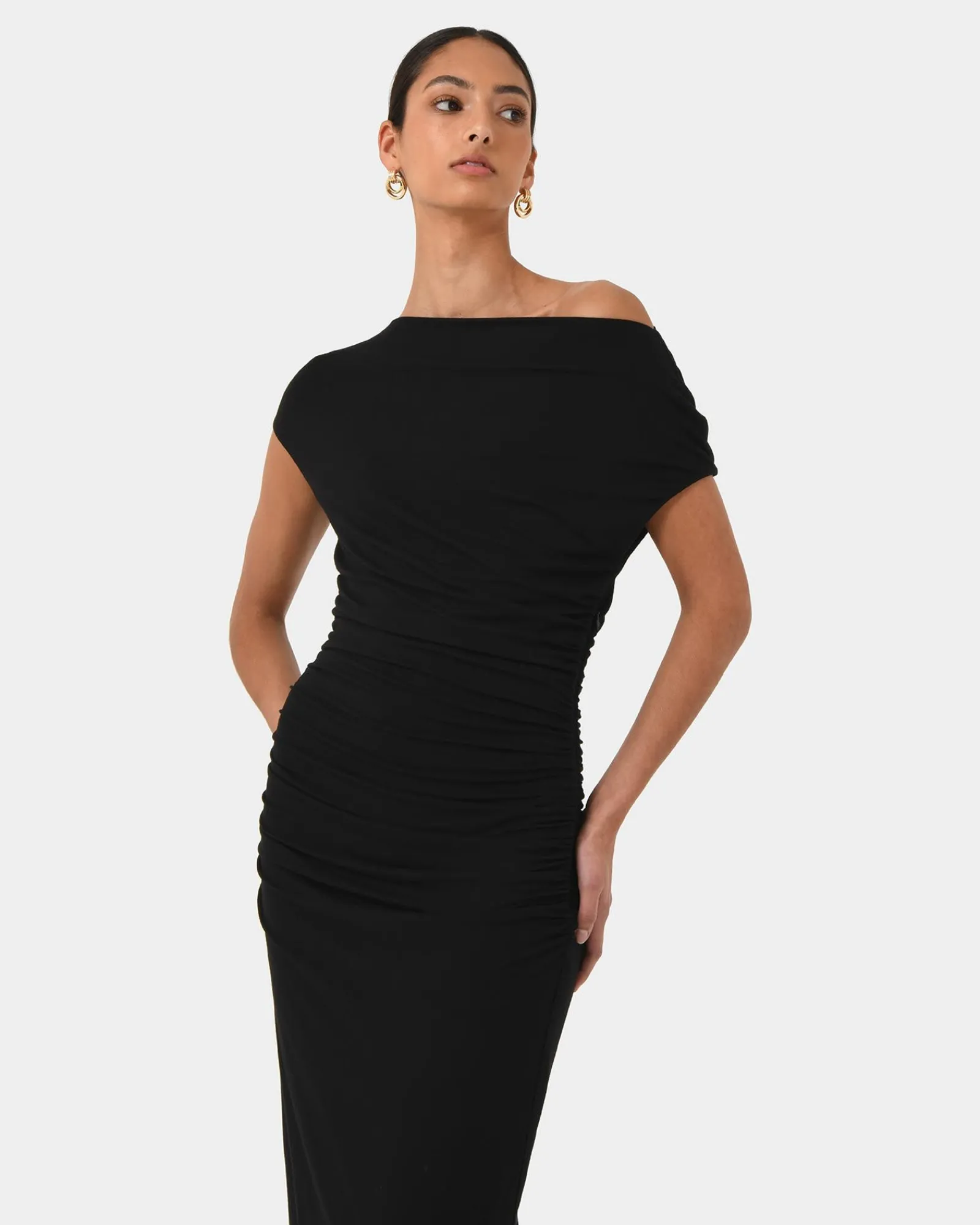 Turn heads with the Mia Ruched Jersey Dress, where elegance meets ease. Featuring side ruching details that flatters your shape, it can also be styled as an off shoulder dress. The soft jersey fabric ensures comfort all day or night, a must-have for your next special occasion or night out.