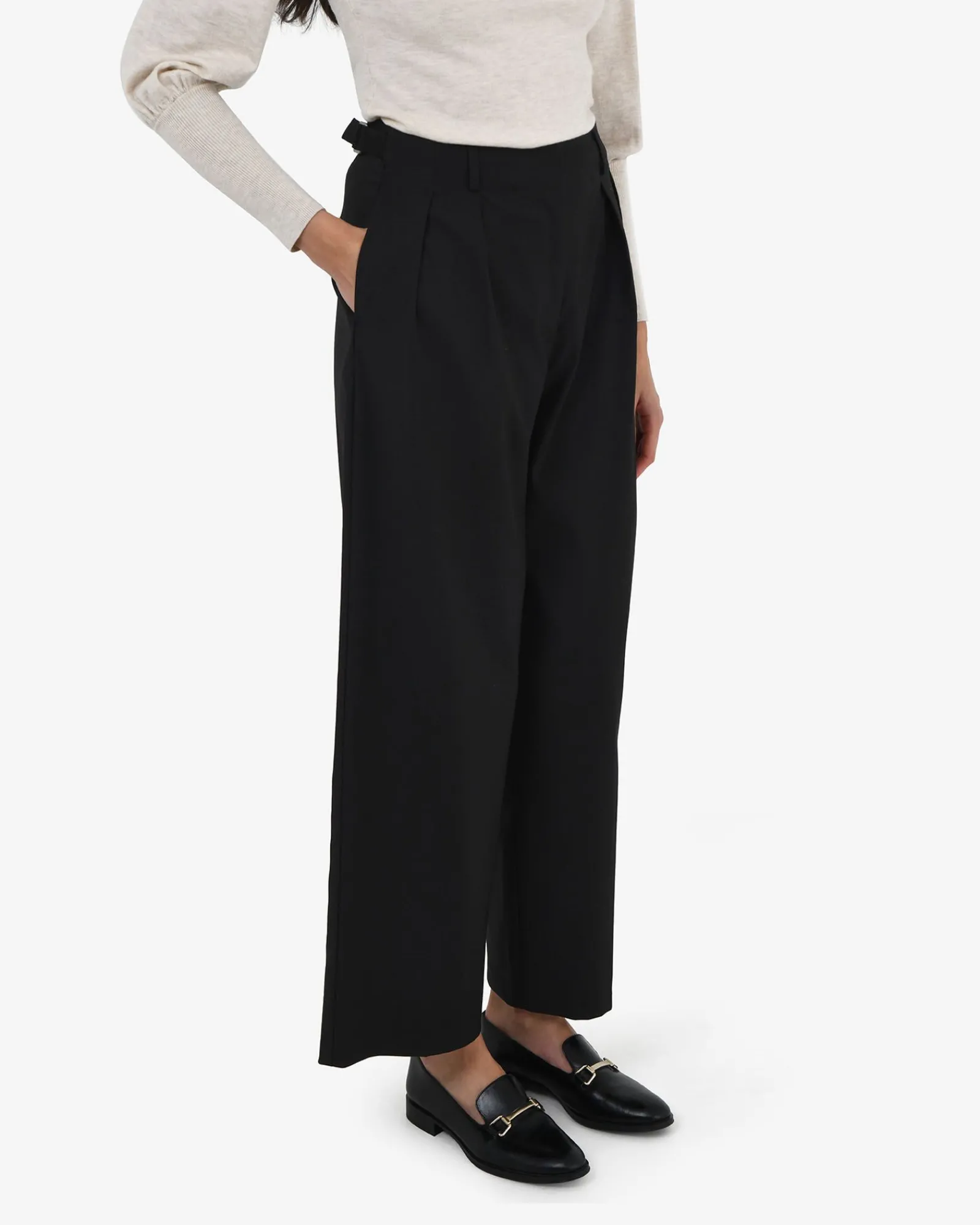 A modern essential for everyday wear, the Milan Adjustable Waist Pants offer a relaxed yet refined silhouette. It is high waisted, features a fixed waistband with adjustable tabs, lightweight in fabric, perfect for work, travel or casual wear. Style it with a blazer, a knitted top, or a sleek satin blouse to customise your look.