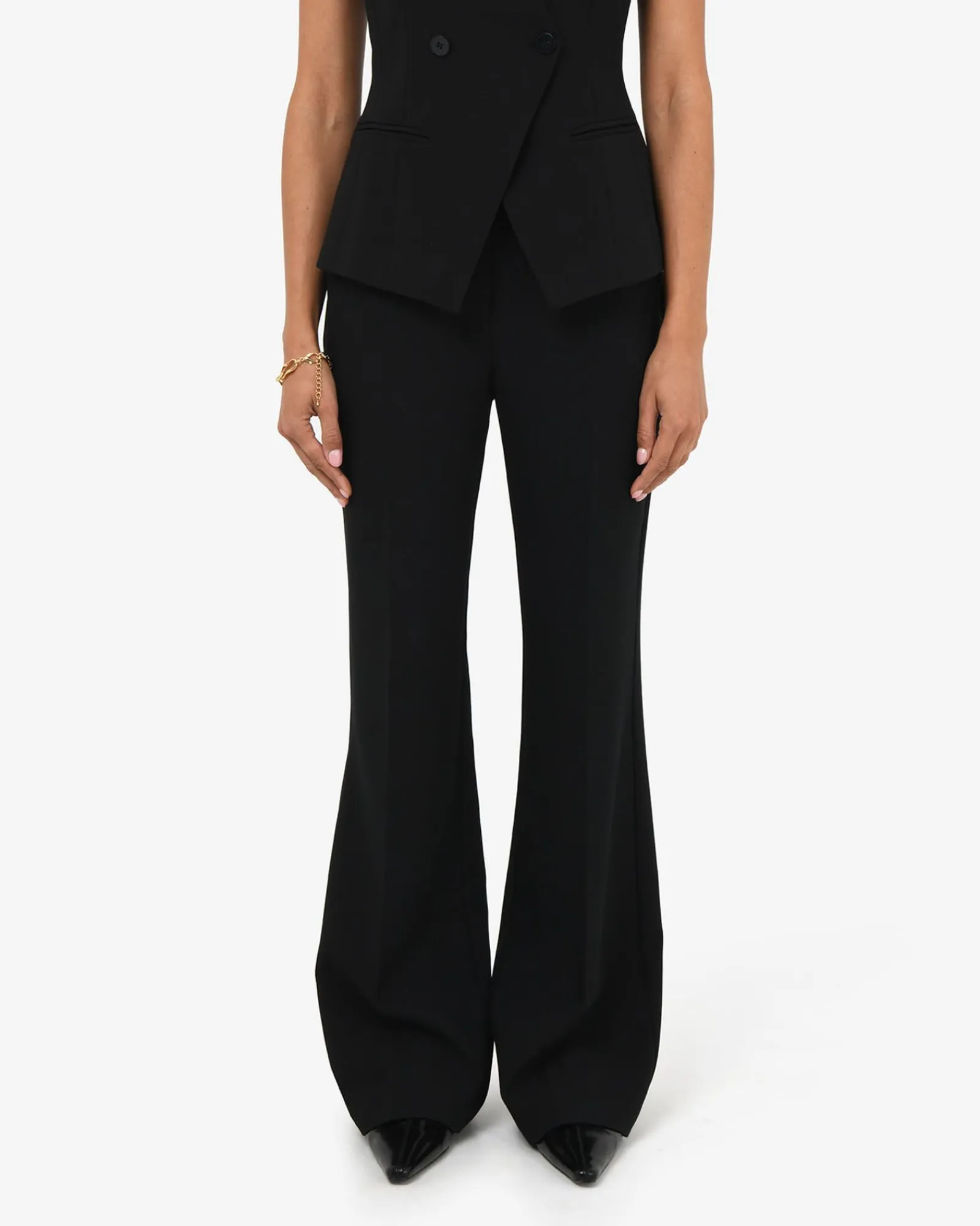 Confidence starts from the bottom up. The Nikki Flared Leg Pantsfeature a sleek high waist with a gentle flare that flows effortlessly, giving you length, shape, and comfort all day long. Whether paired perfectly with the Nikki Collareless Vest or styled your own way, these pants elevate any look from simple to striking.