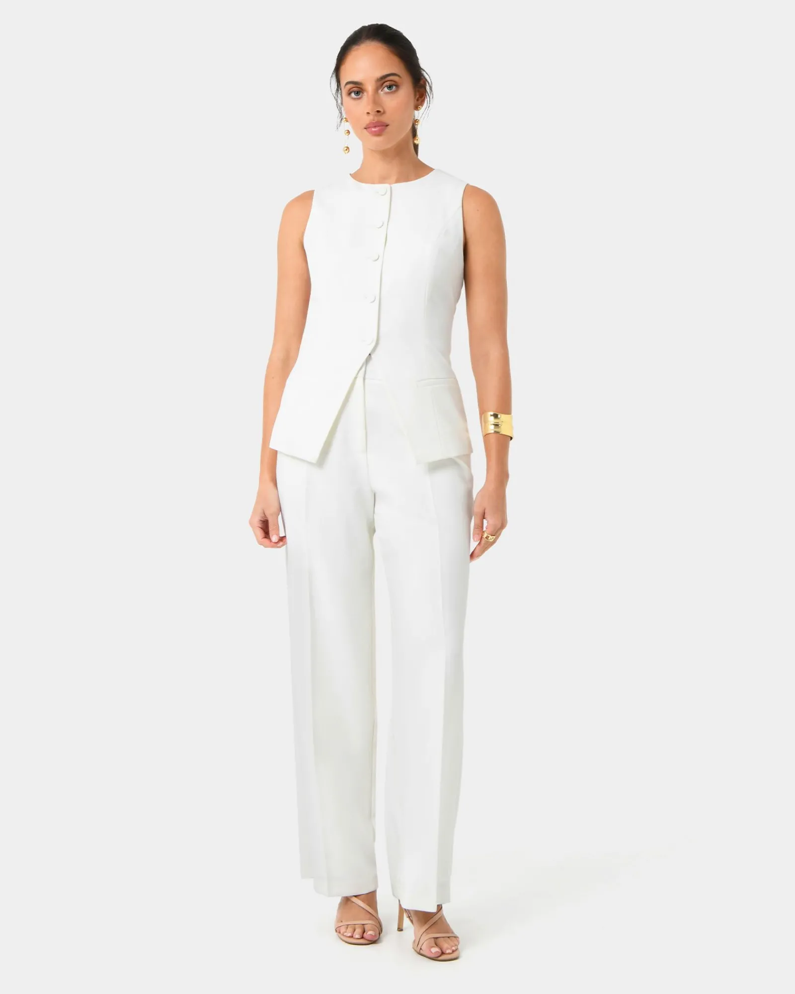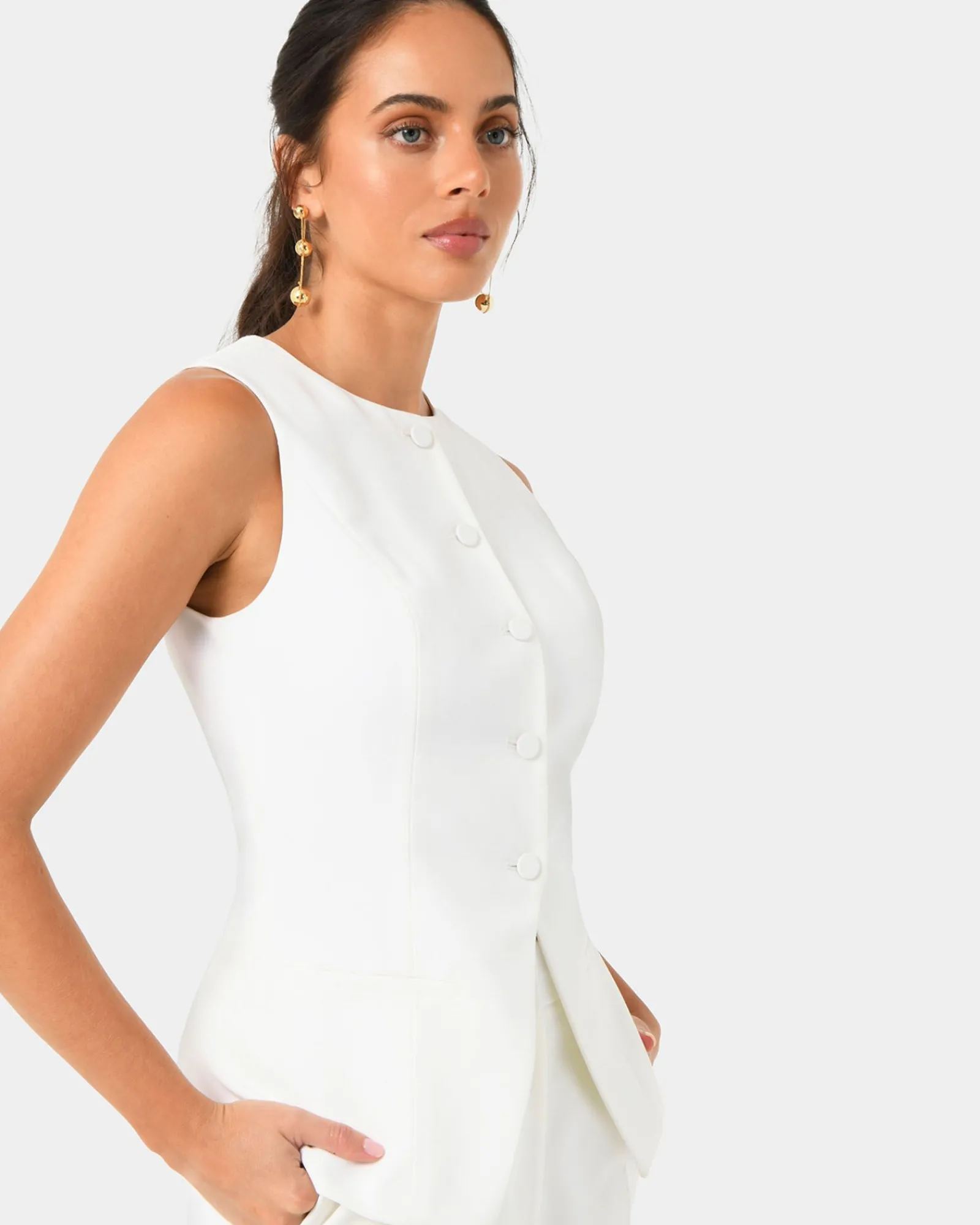 Stay sharp and stylish in this Nikki Longline Vest. Its tailored design and premium fabric make it perfect for work or casual outings. Complete the look by pairing it with the matching Nikki Tailored Wide Leg Pants.