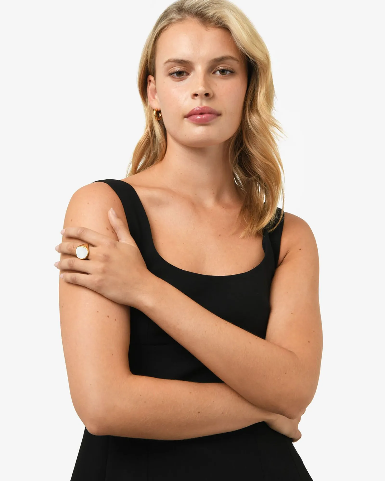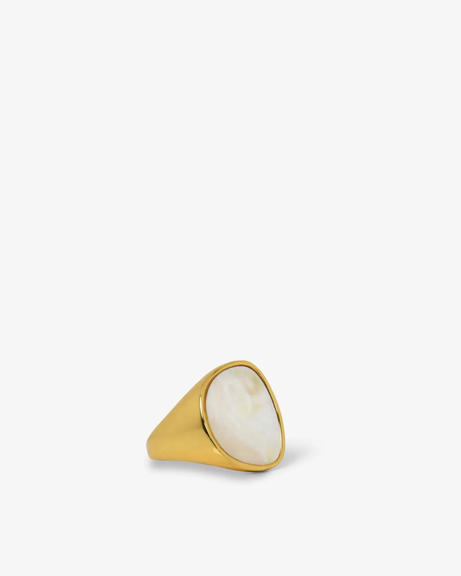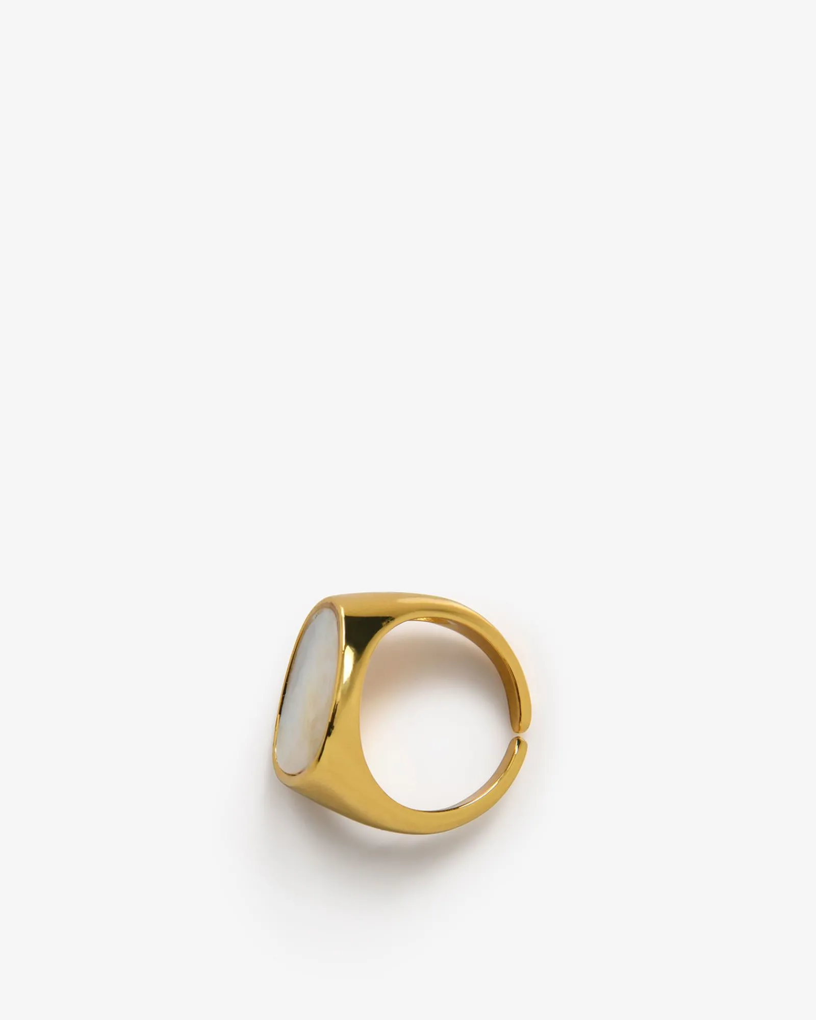 Make a striking impression with the Pearl Mirage Statement Ring. Centered around a large, oval-shaped pearl, this adjustable open-back ring combines bold elegance with effortless wearability, making it a versatile addition to any jewelry collection.
