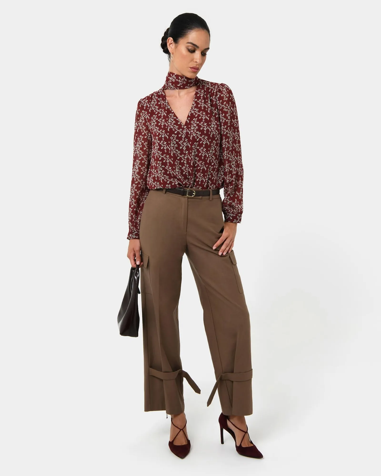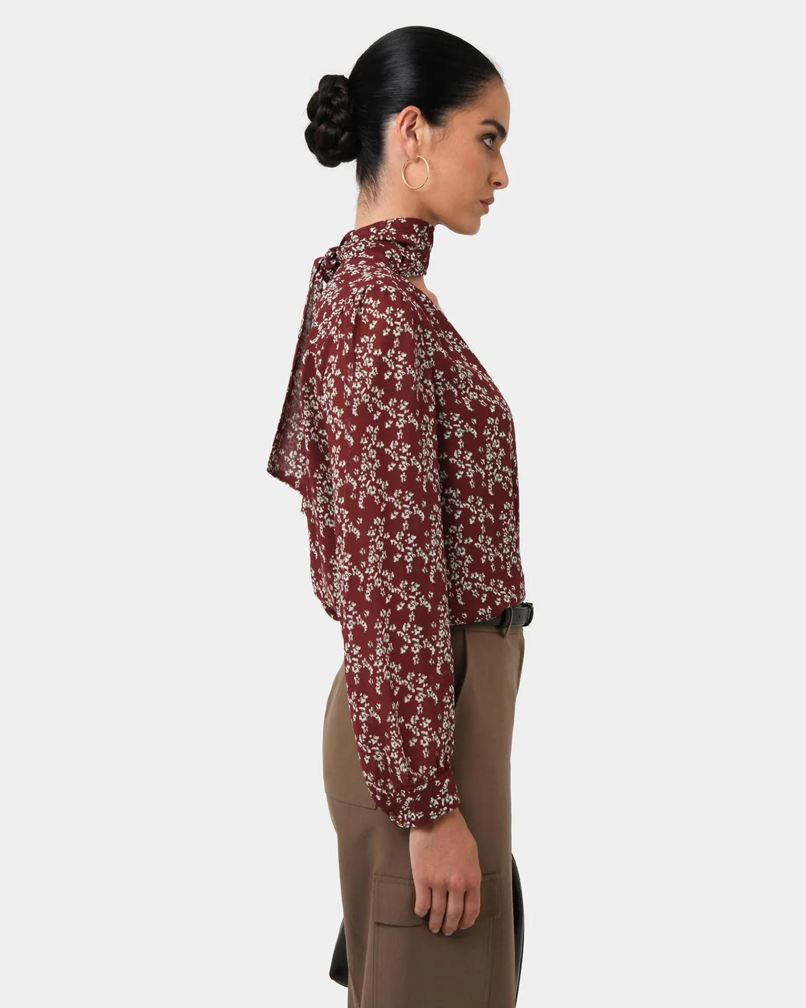 The Rema Floral Tie Blouse featuring a delicate floral print and a flattering tie neckline. Dress it up with tailored pants or keep it casual with denim, either way, you’re blooming with style.