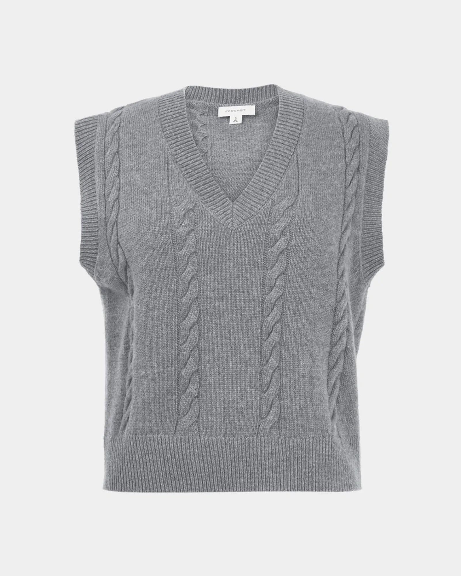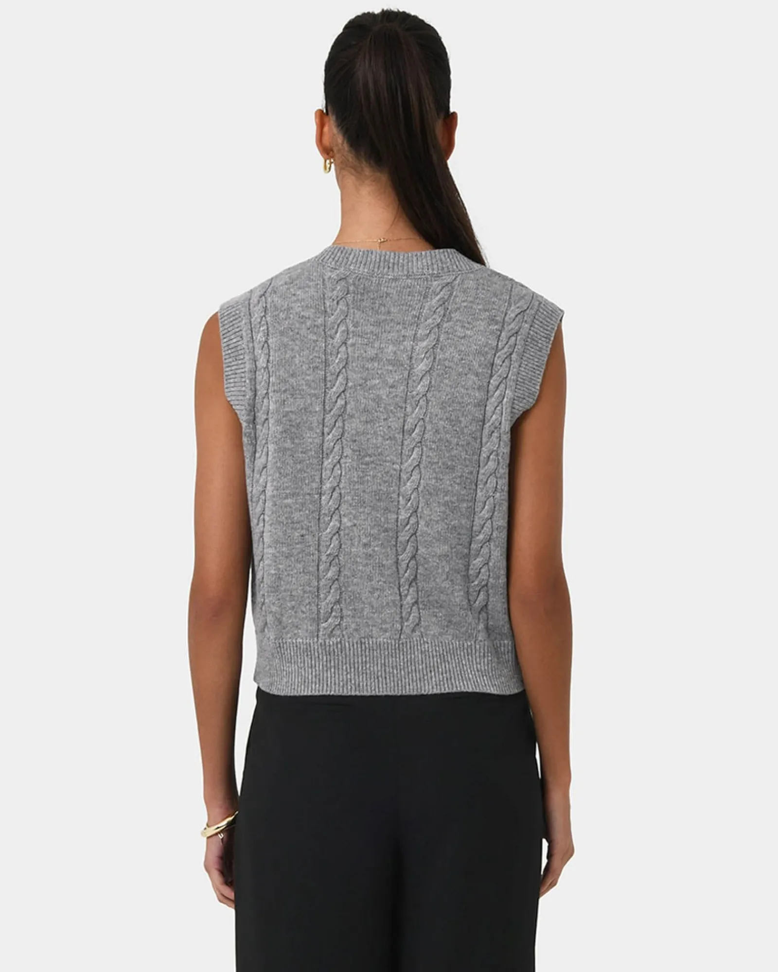 Perfect for effortless layering, the Rulia V-Neck Vest features a classic cable knit design with ribbed edges for a refined touch. Made from a lightweight, stretch fabrication, it offers a relaxed fit and a flattering V-neckline for a statement look.