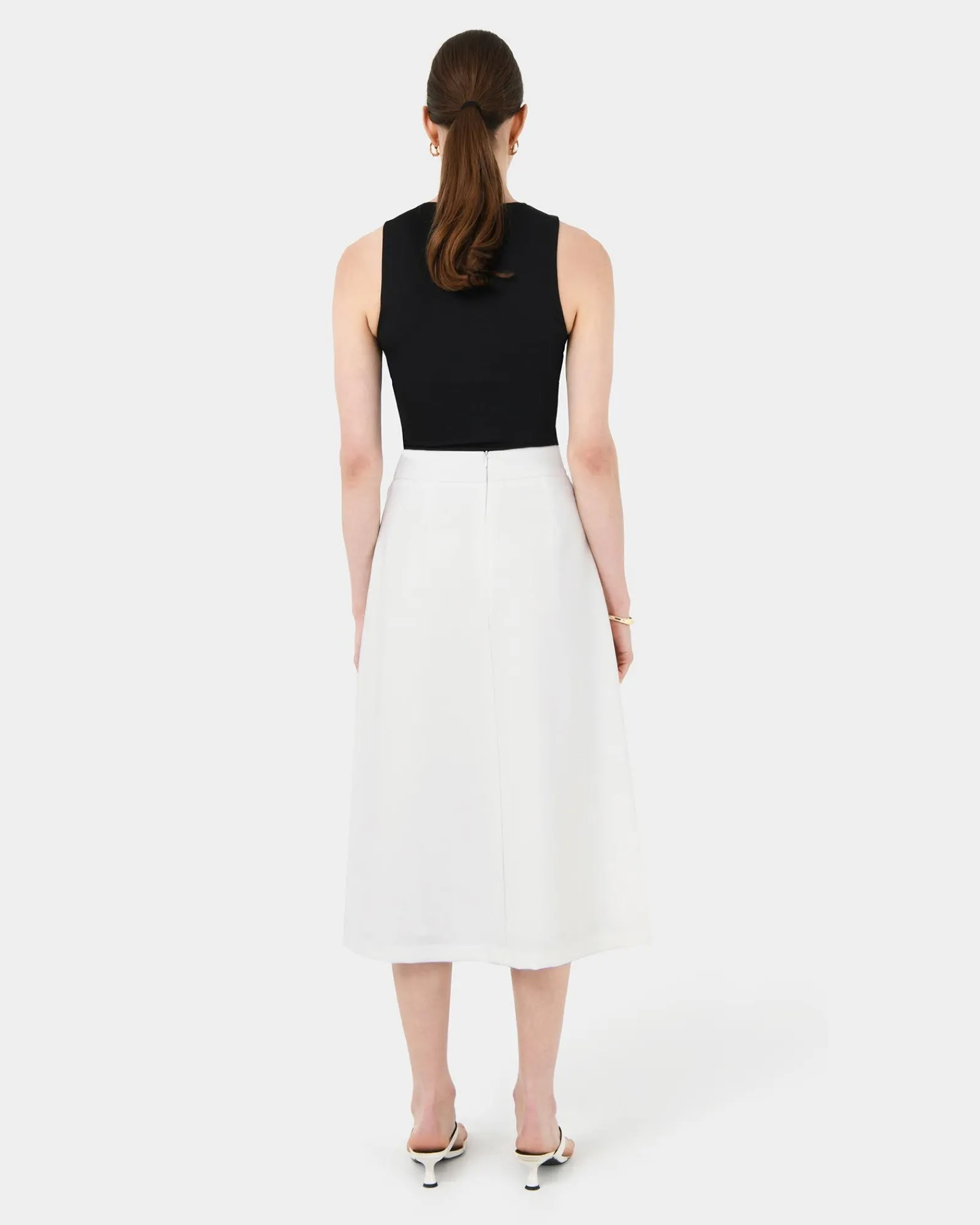 Gracefully chic, the Sofia Wrap Midi Skirt blends style with a polished touch. Softly structured and flattering, its midi length is the perfect balance between relaxed and elegant, making it ideal for a variety of occasions.
