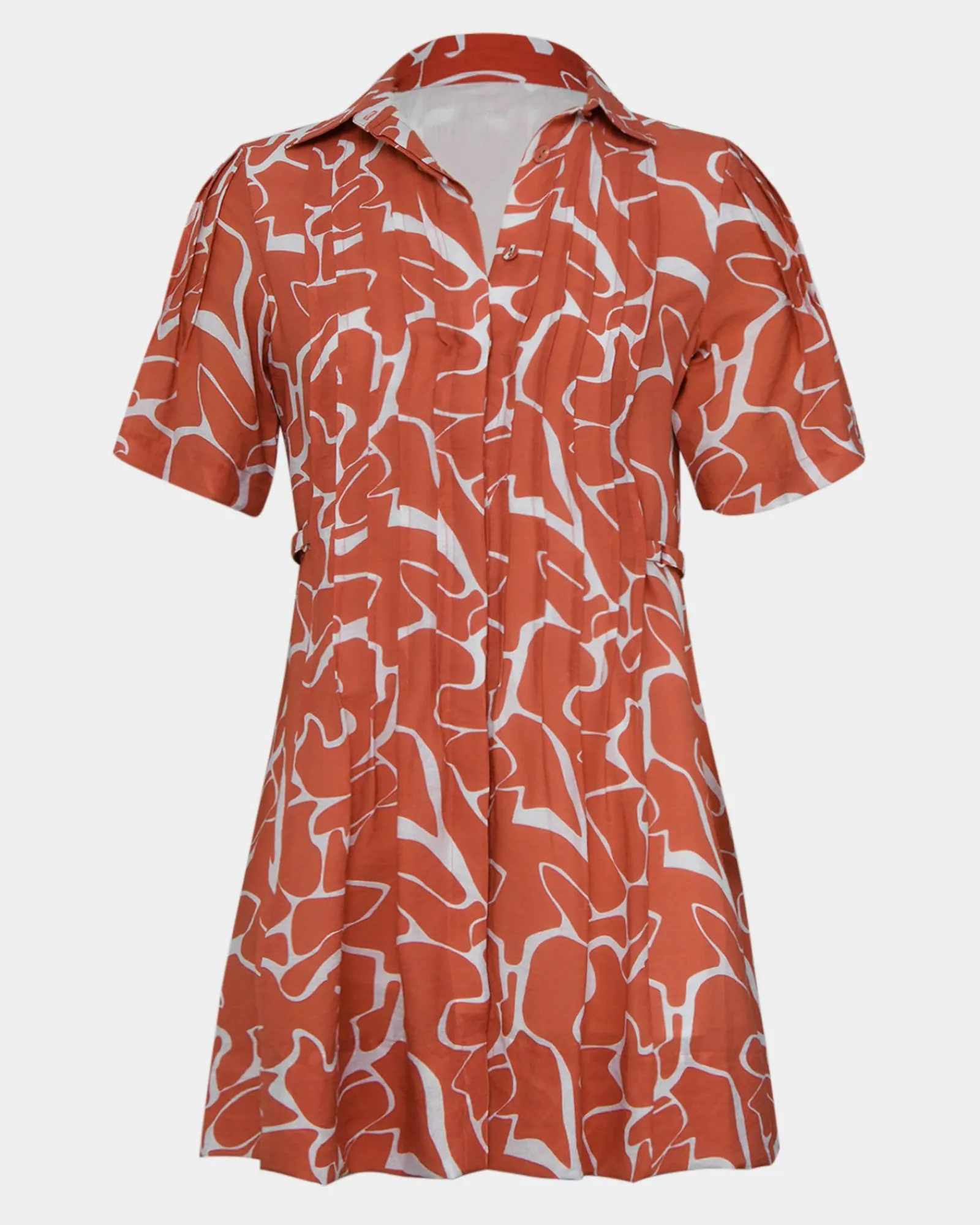 Make a statement with the Sunshine Pleated Dress. The flowing pleats add movement and grace, while the vibrant coral print brings a pop of color to your wardrobe. This dress is perfect for summer events or a sunny day out, offering a radiant and feminine look.